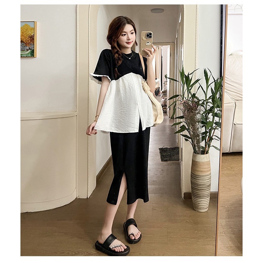ชุดชุดคลุมท้องฤดูร้อนรวมกระโปรงและเสื้อทรงหลวมดีไซน์สวยหรูอ่อนเยาว์2สี