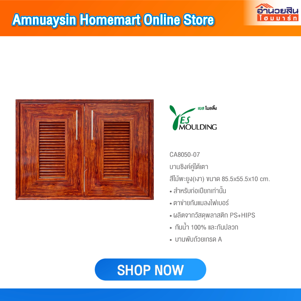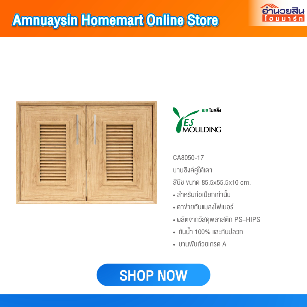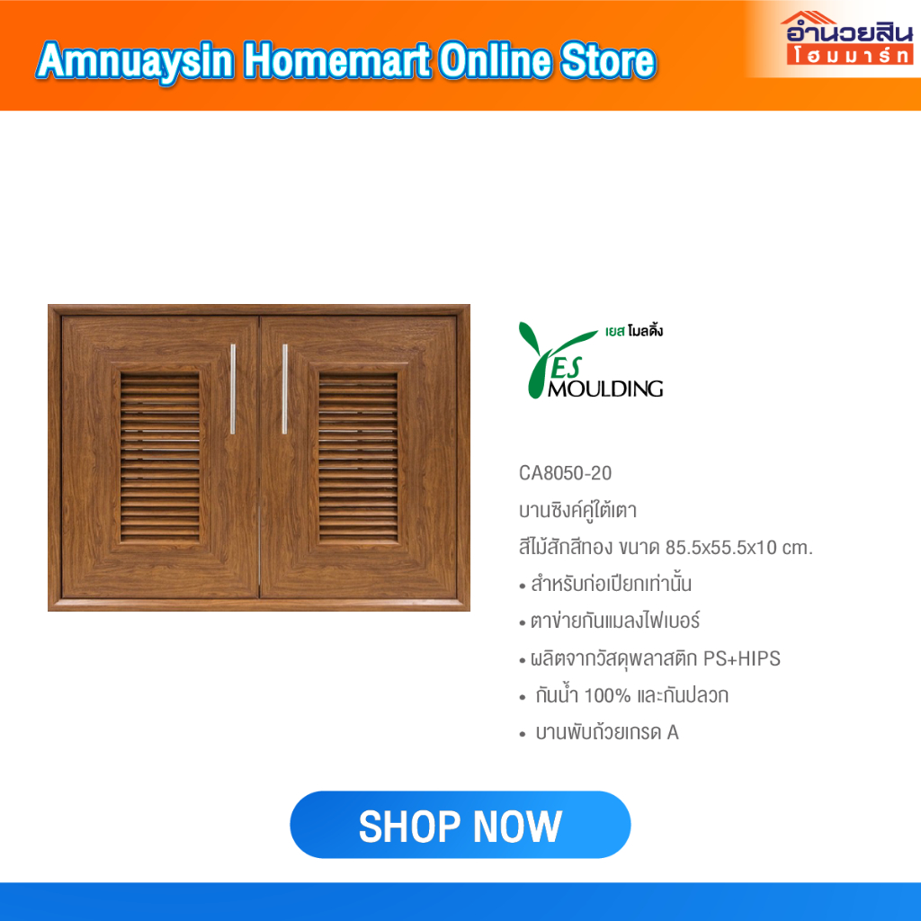 Yes Moulding CA8050 บานซิงค์คู่ใต้เตาแบบมีบานเกล็ด(ก่อเปียก)