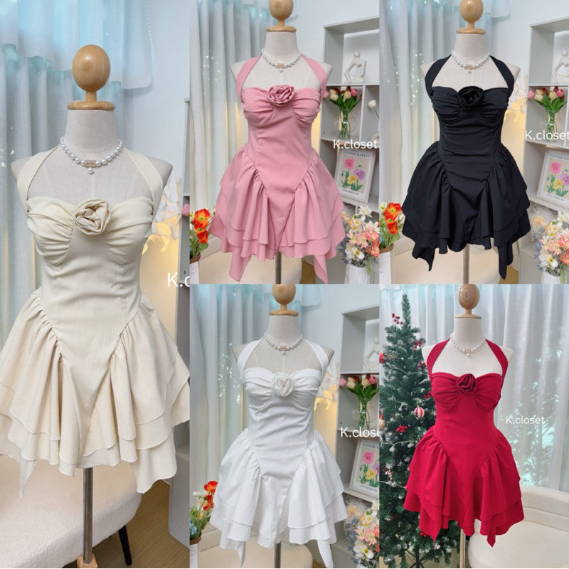 เดรสแขนตุ๊กตาลายดอก เดรสสาวอวบใส่ได้มีถึงอก 45 เดรสน่ารัก เสื้อผ้าผู้หญิง