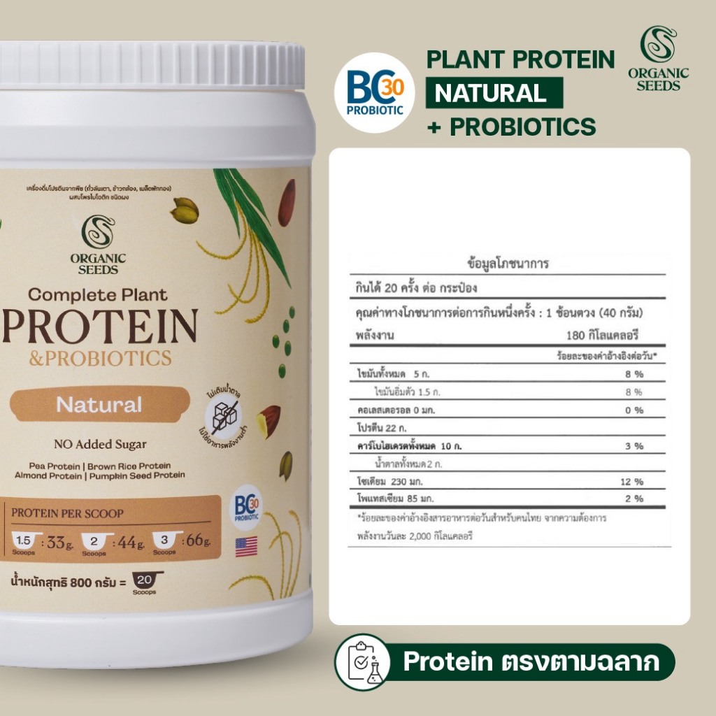 โปรตีนพืช รส Natural 1 กระปุก / Complete Plant Protein 800g (แบบกระปุก)