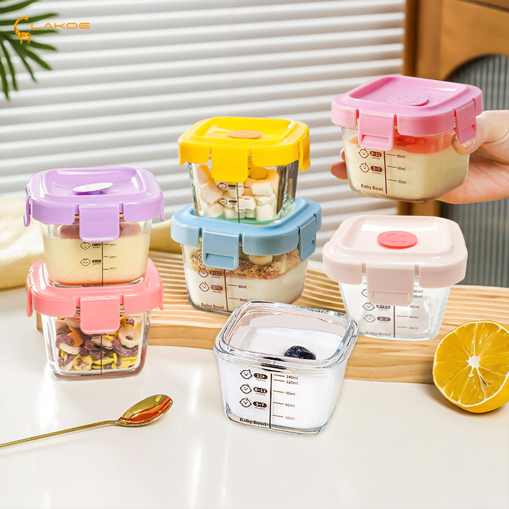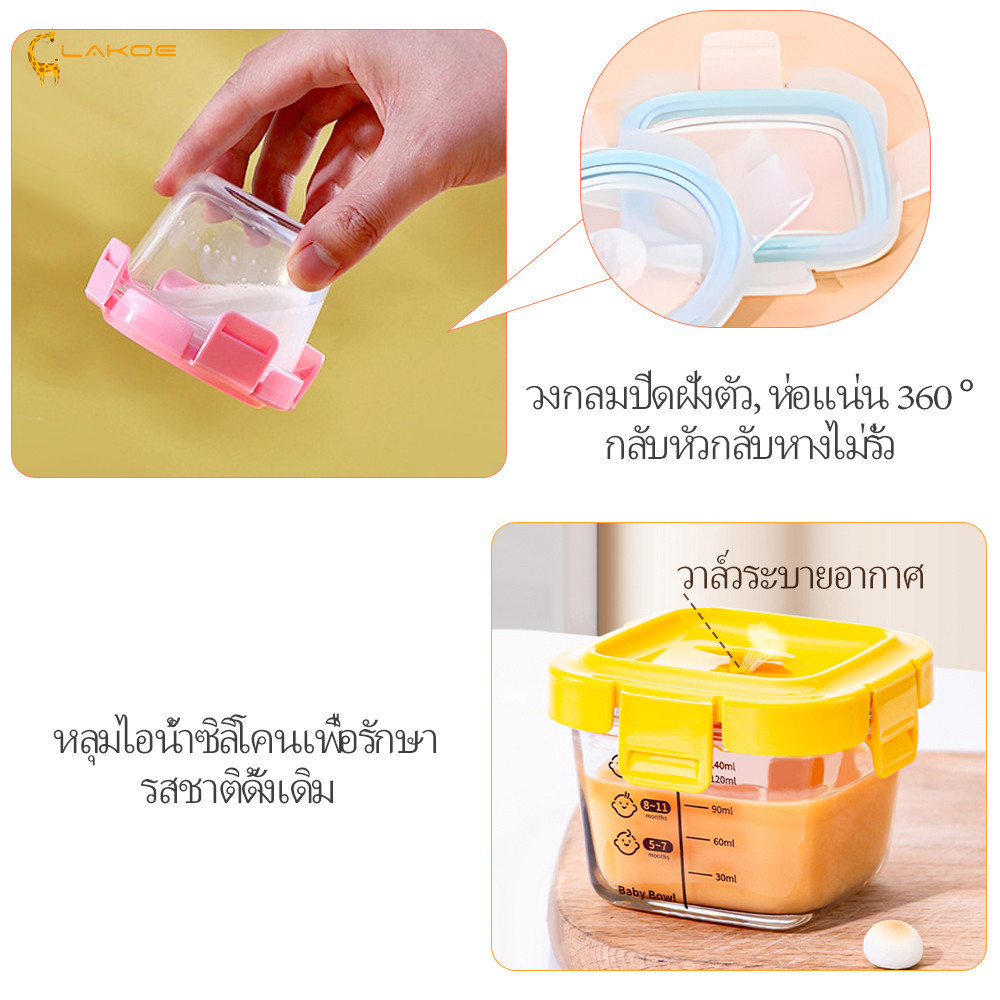 LAKOEMALL กล่องข้าว กล่องแก้ว อาหารทารกแช่แข็ง ถ้วยเด็ก เซต3ใบ ปลอดภัยสำหรับเด็กเล็ก กล่องอาหารเด็ก