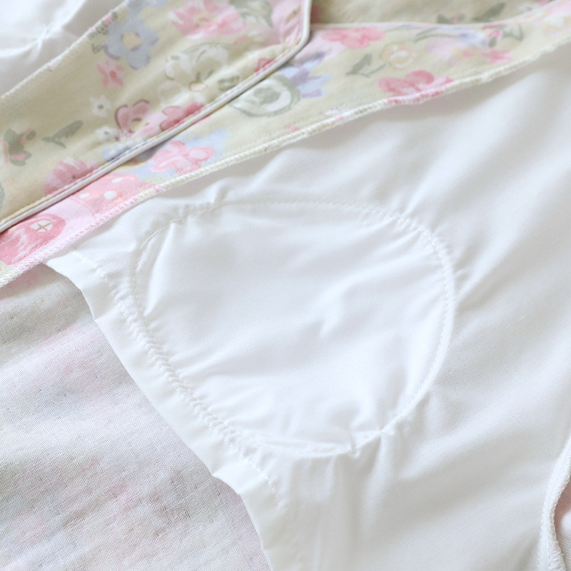 ผ้าฝ้ายแท้ผ้ากอซคู่กับแผ่นหน้าอกชุดนอนชุดผู้หญิงคอวีแขนสั้นตัดกางเกงฤดูร้อนบางผ้าฝ้าย ชุดบ้าน