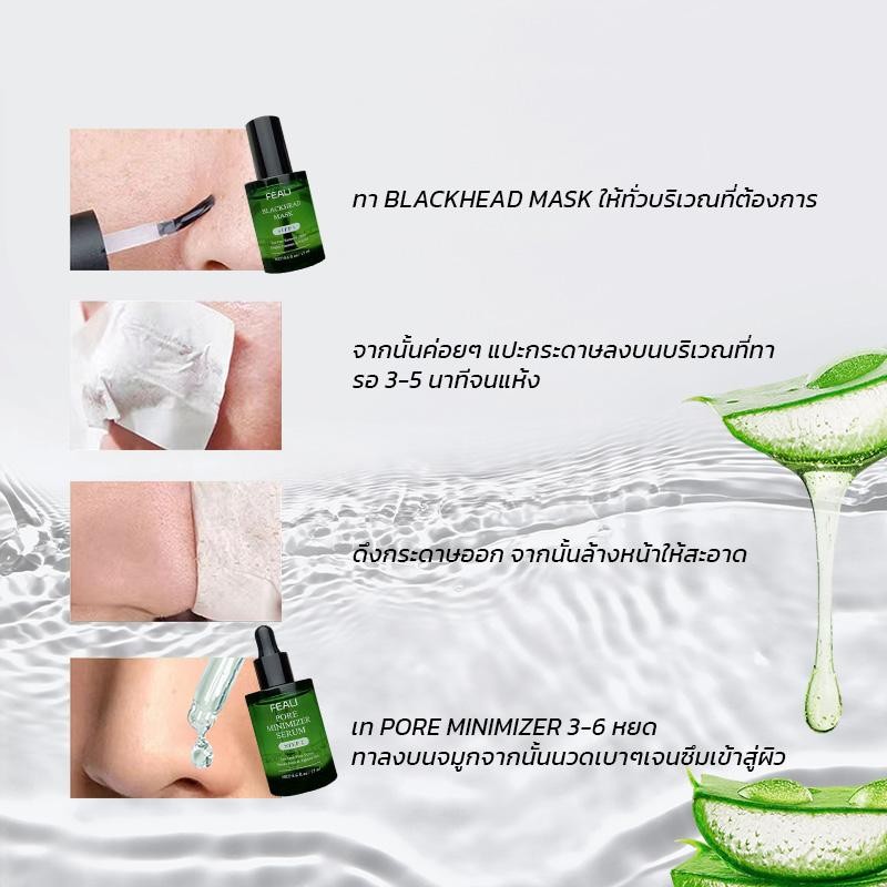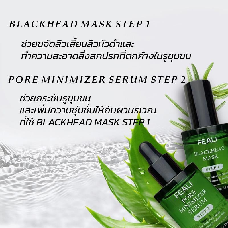FEALI เซ็ตคู่ TEA TREE มาส์กลอกสิวเสี้ยน + เซรั่มปรับรูขุมขนให้ดูเล็กลง