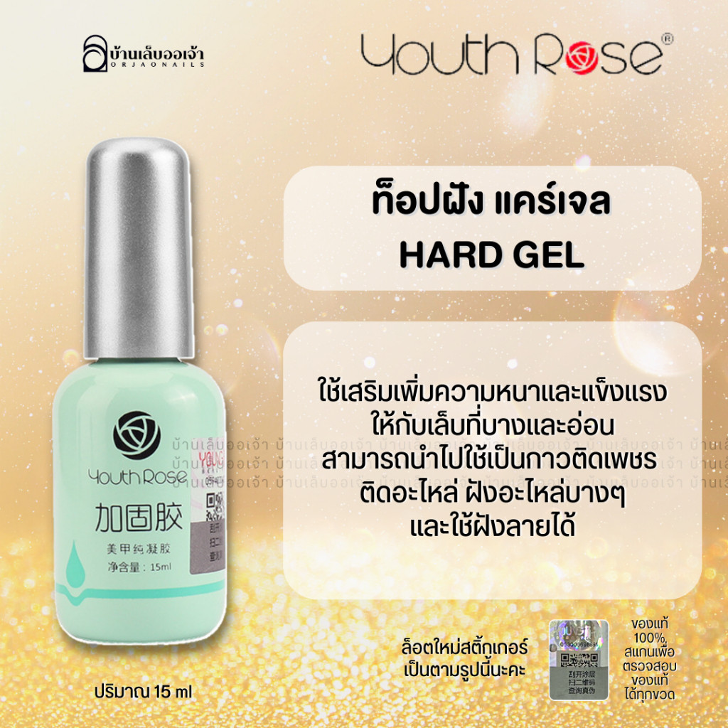 Youth Rose เบสท็อป เบสกุหลาบ ท็อปกุหลาบ เบสเจลทาเล็บ ท๊อปเจล เคลือบเล็บเจล เบสโค้ท ท็อปโคทเล็บ 15ml
