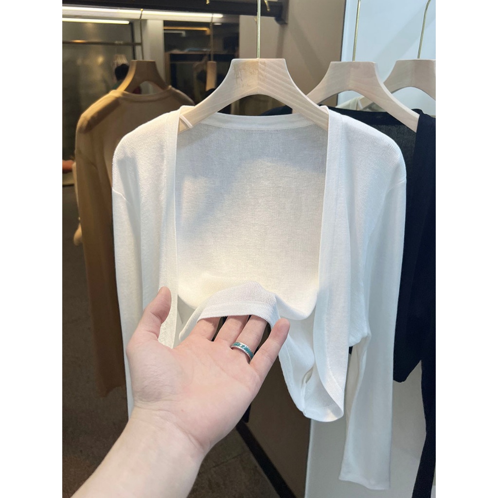 เสื้อแจ็กเก็ตคาร์ดิแกน ผ้าถัก ป้องกันแดด พร้อมกระโปรงสลิง สําหรับผู้หญิง