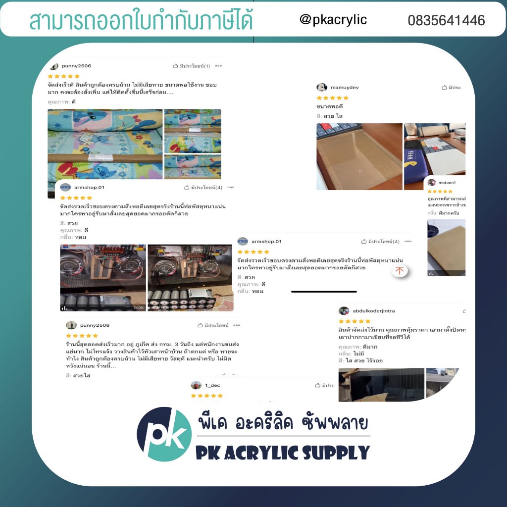อะคริลิค งานตัดตามแบบของลูกค้า มีหลากหลายสี