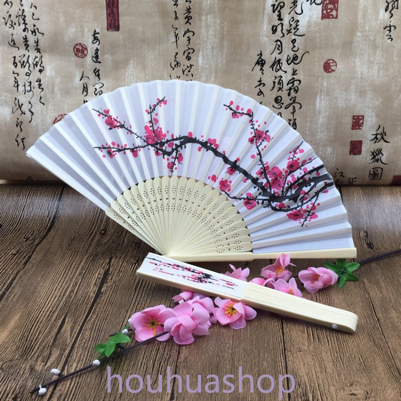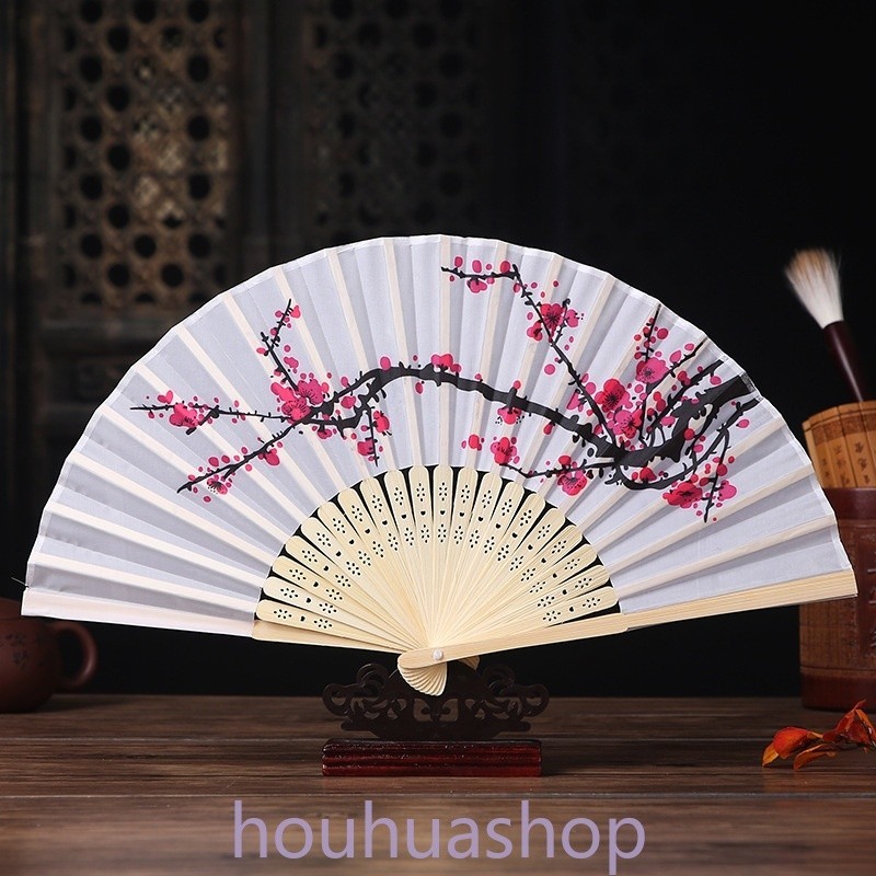 พัดไม้ไผ่ แบบพับได้ รูปดอกพลัม สไตล์จีนวินเทจ เหมาะกับของขวัญแต่งงาน แฟชั่นฤดูร้อน