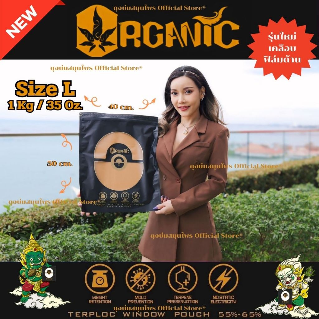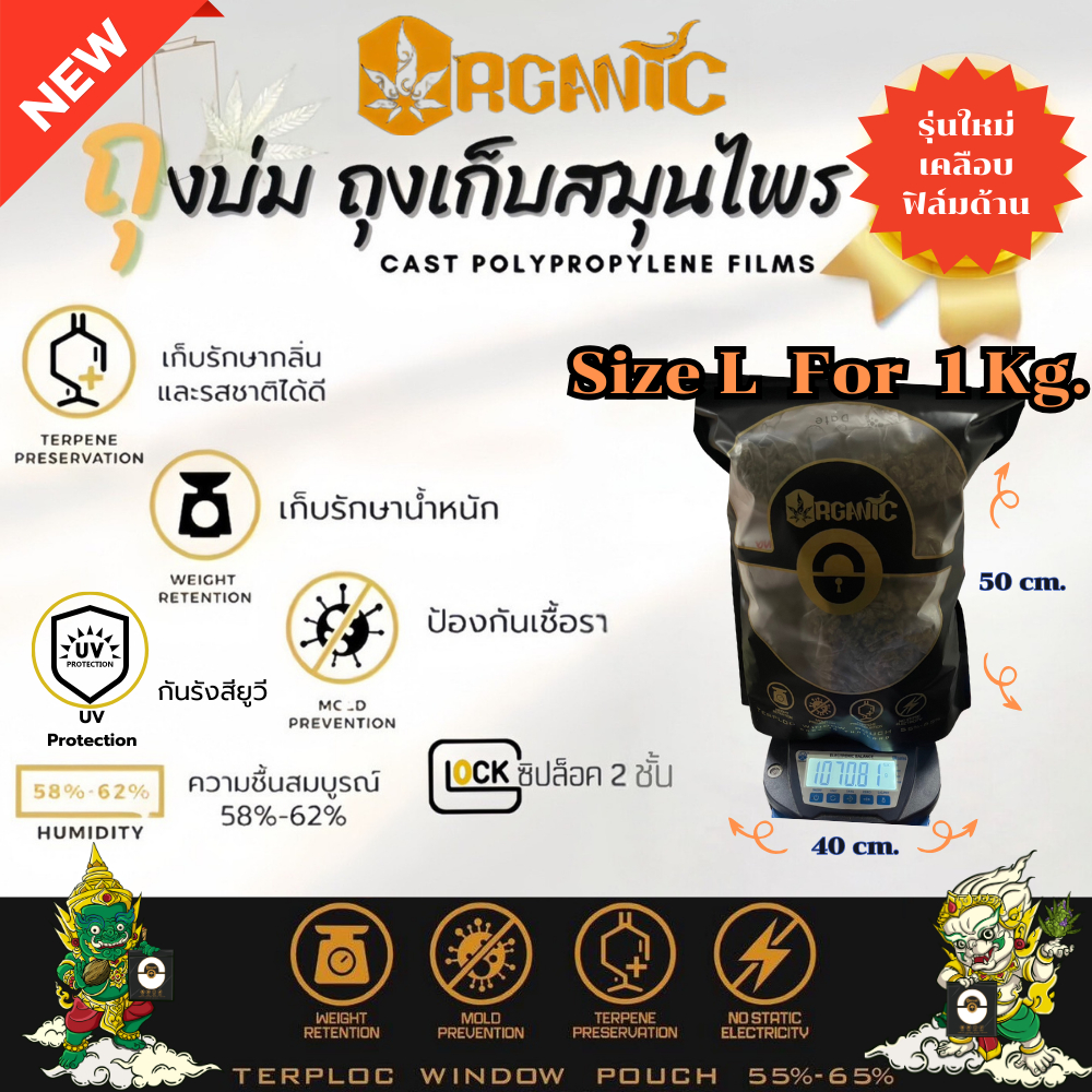ถุงบ่ม Organic Size L ใส่ช่อดอกได้ 1 กิโลกรัม รักษากลิ่น ป้องกันเชื้อรา ควบคุมความชื้น ป้องกันยูวี
