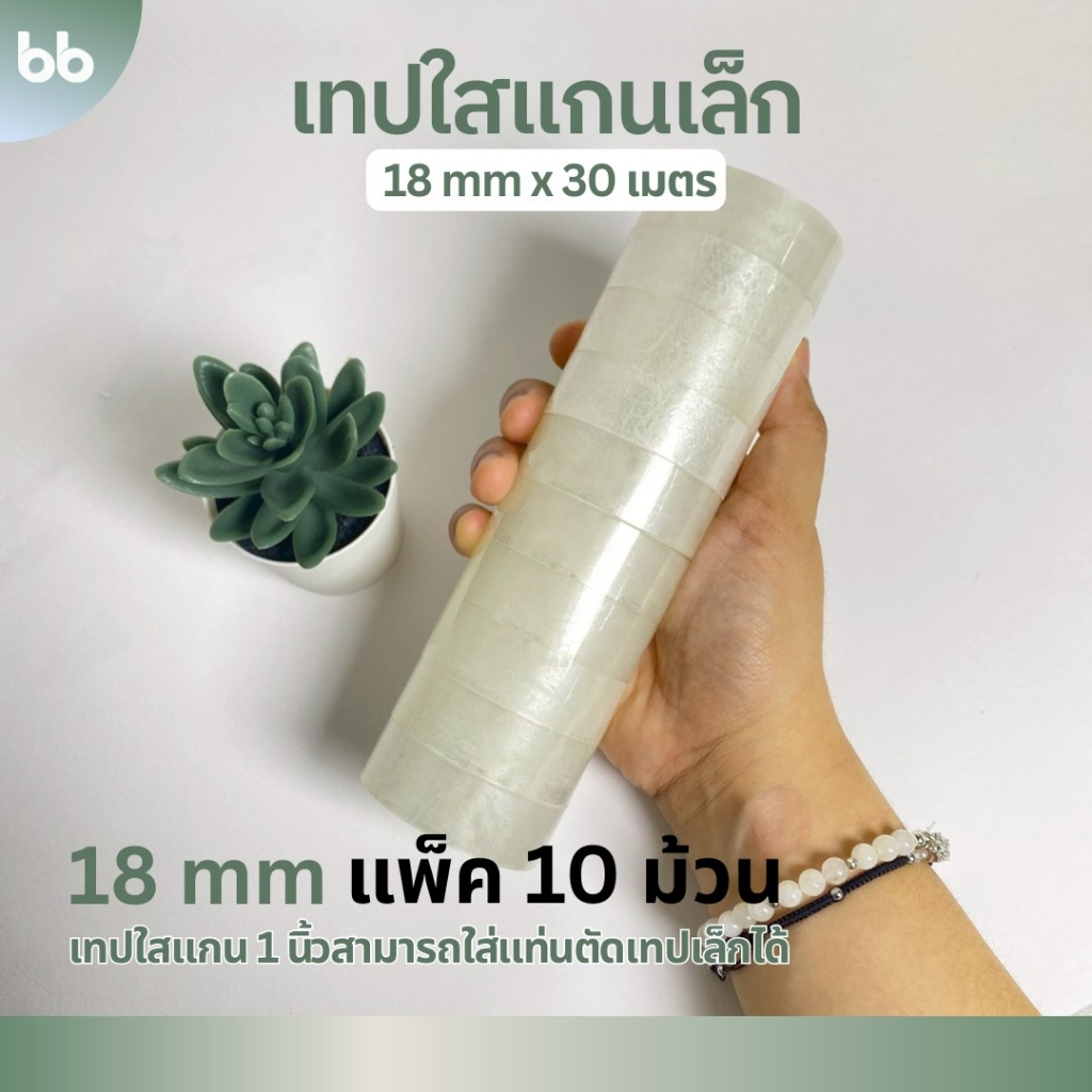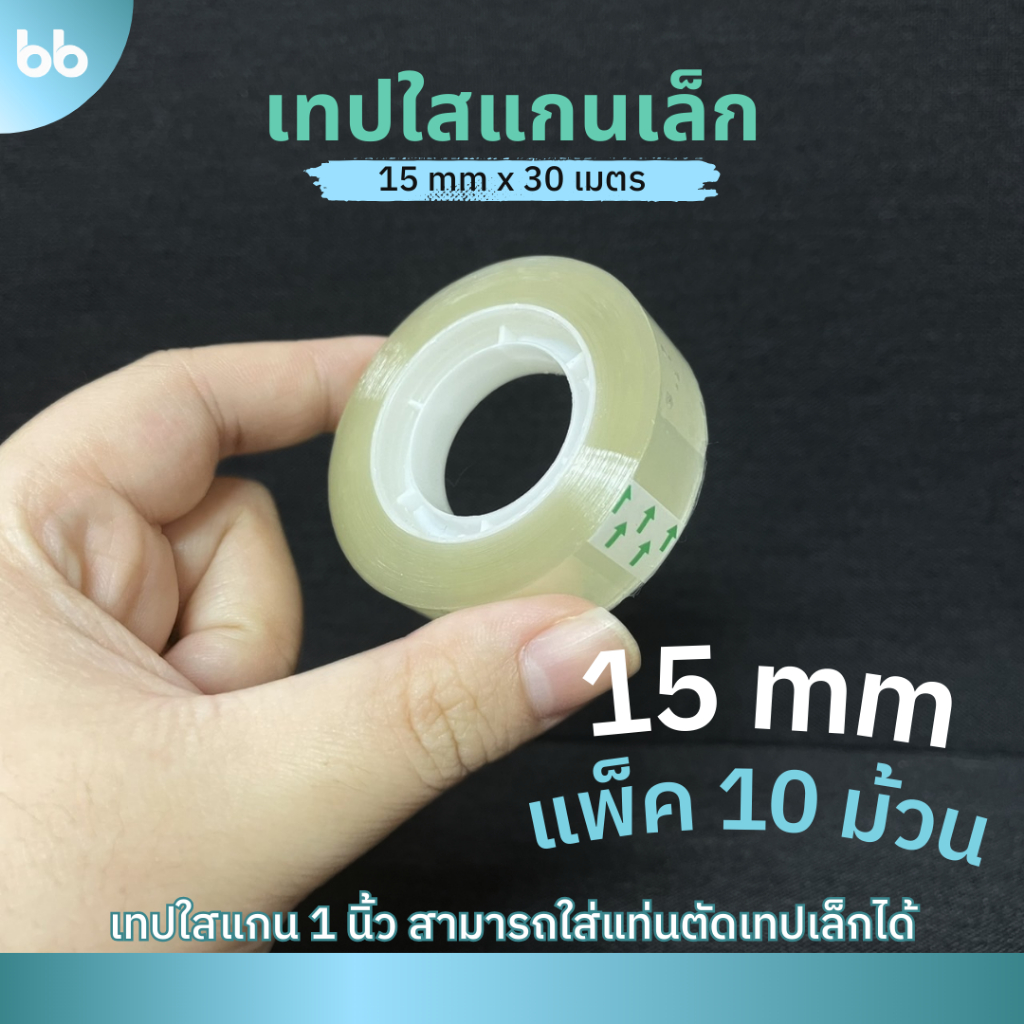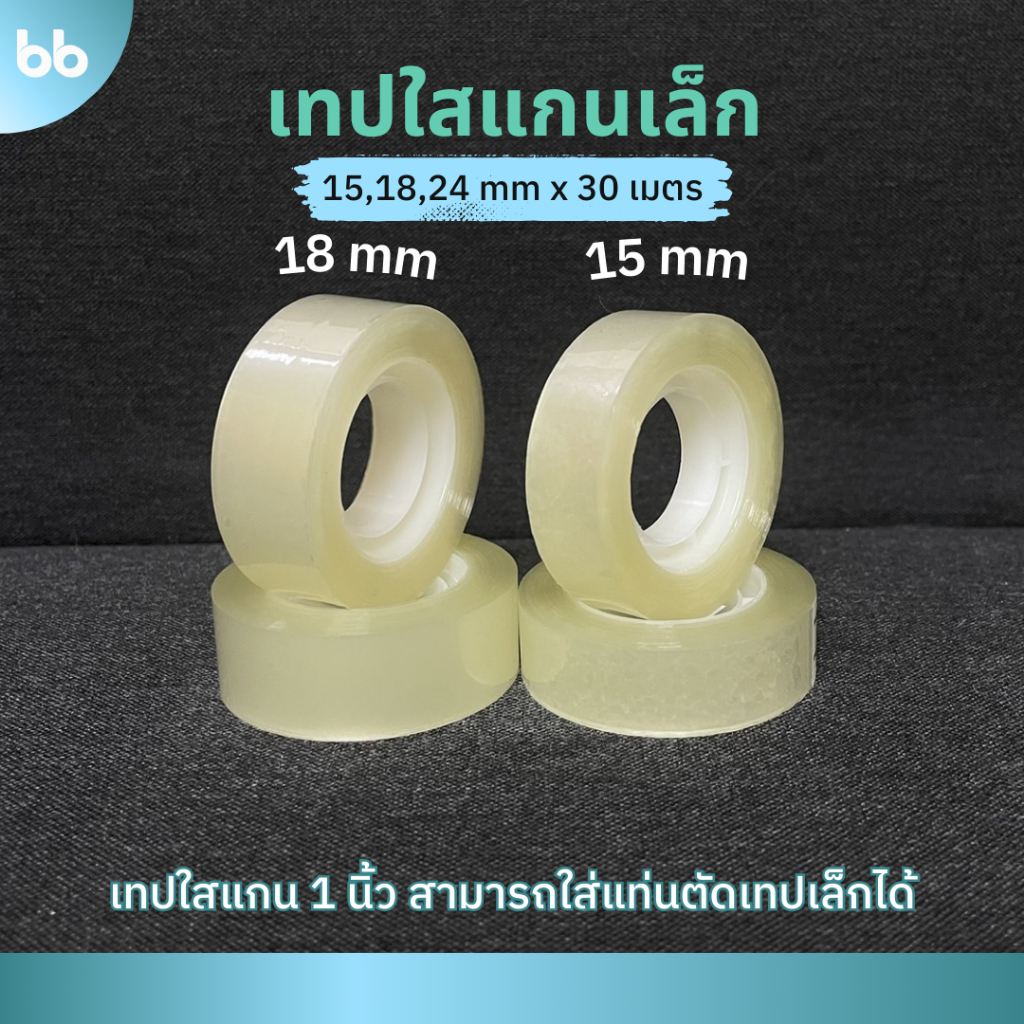 เทปใสม้วนเล็ก (แพ็คละ10 ม้วน) 15,18, 24 mm x 30 เมตร ขนาดแกน 1 นิ้ว เทปสำนักงาน แกนเล็ก