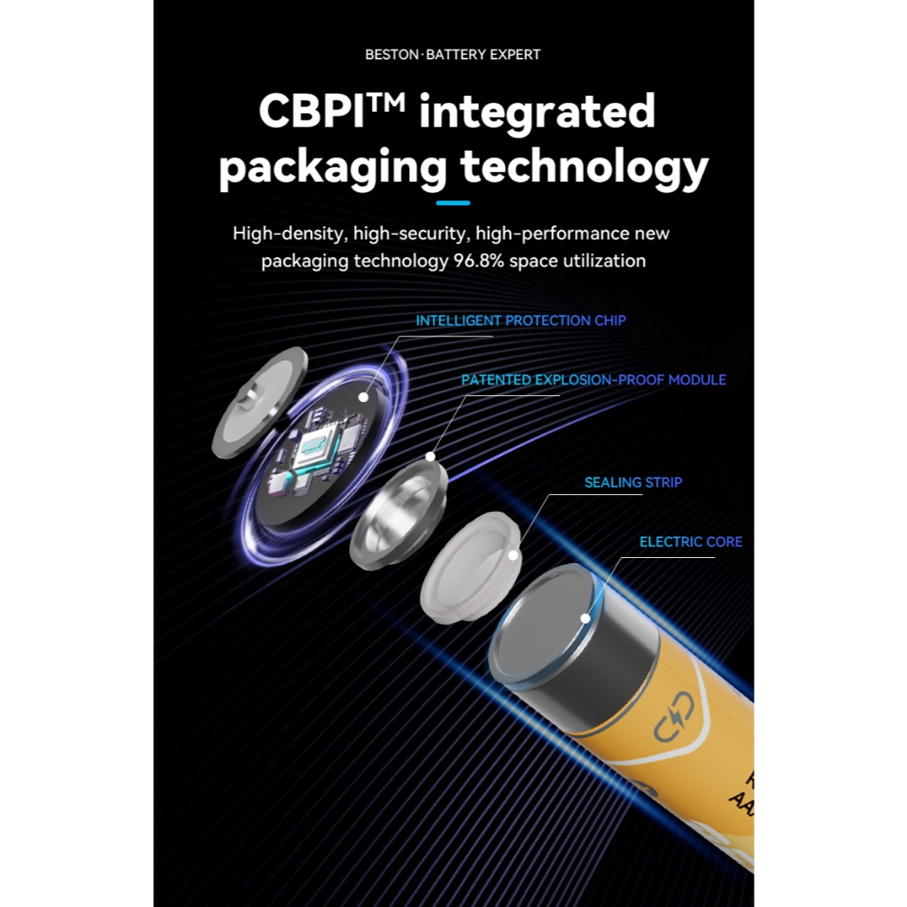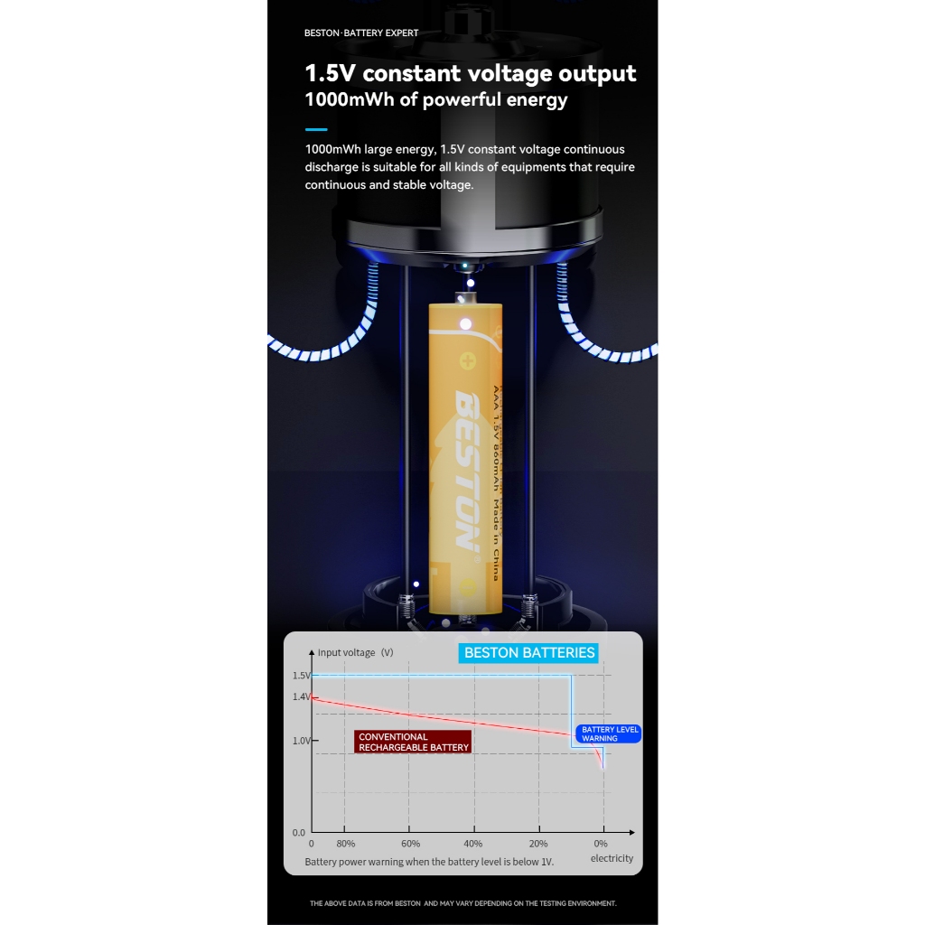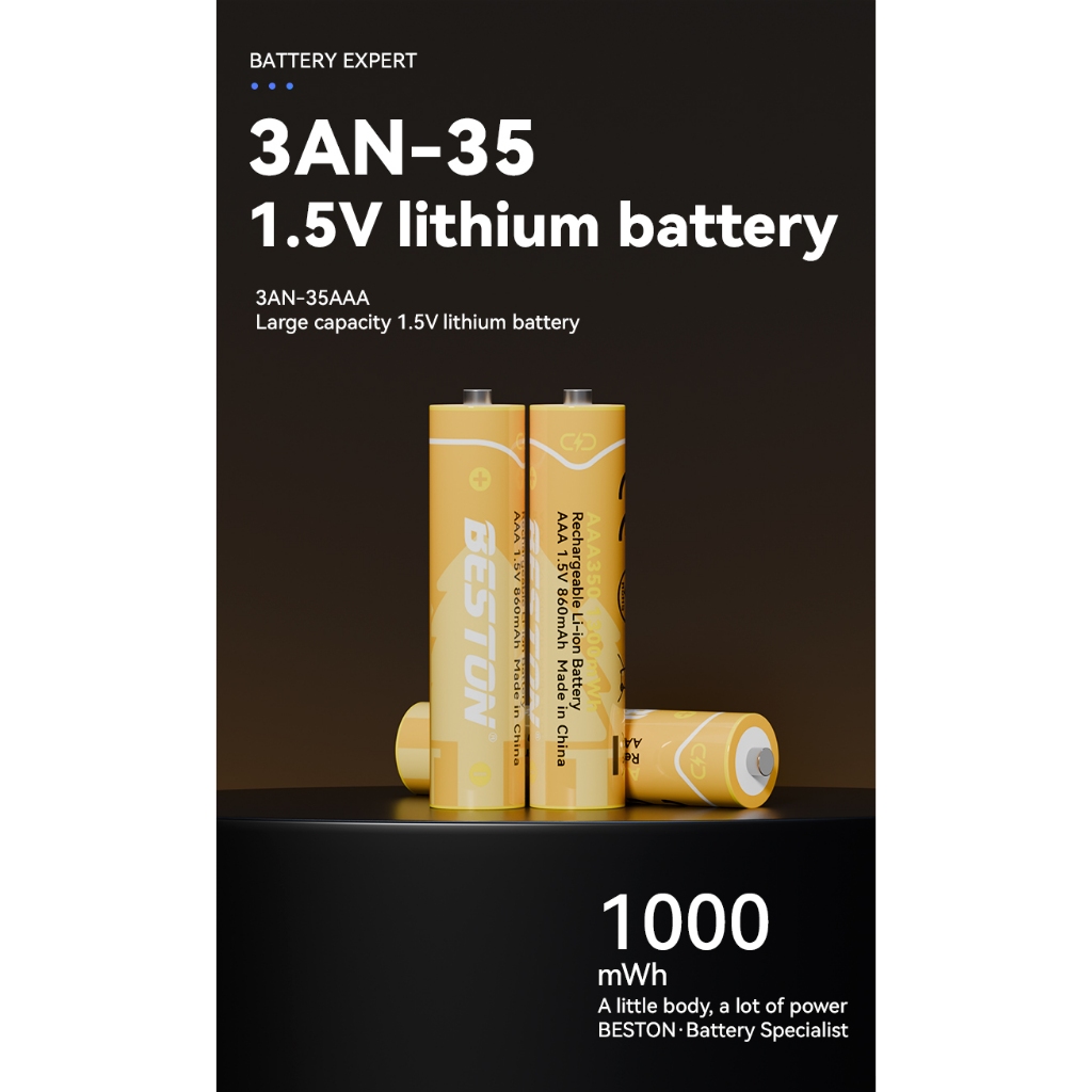 ถ่านชาร์จ AAA Beston 1.5V 666 mWh / 1300mWh แบตเตอรี่ลิเธียมแบบชาร์จไฟได้ จำนวน 4 ก้อน (แผงส้ม)