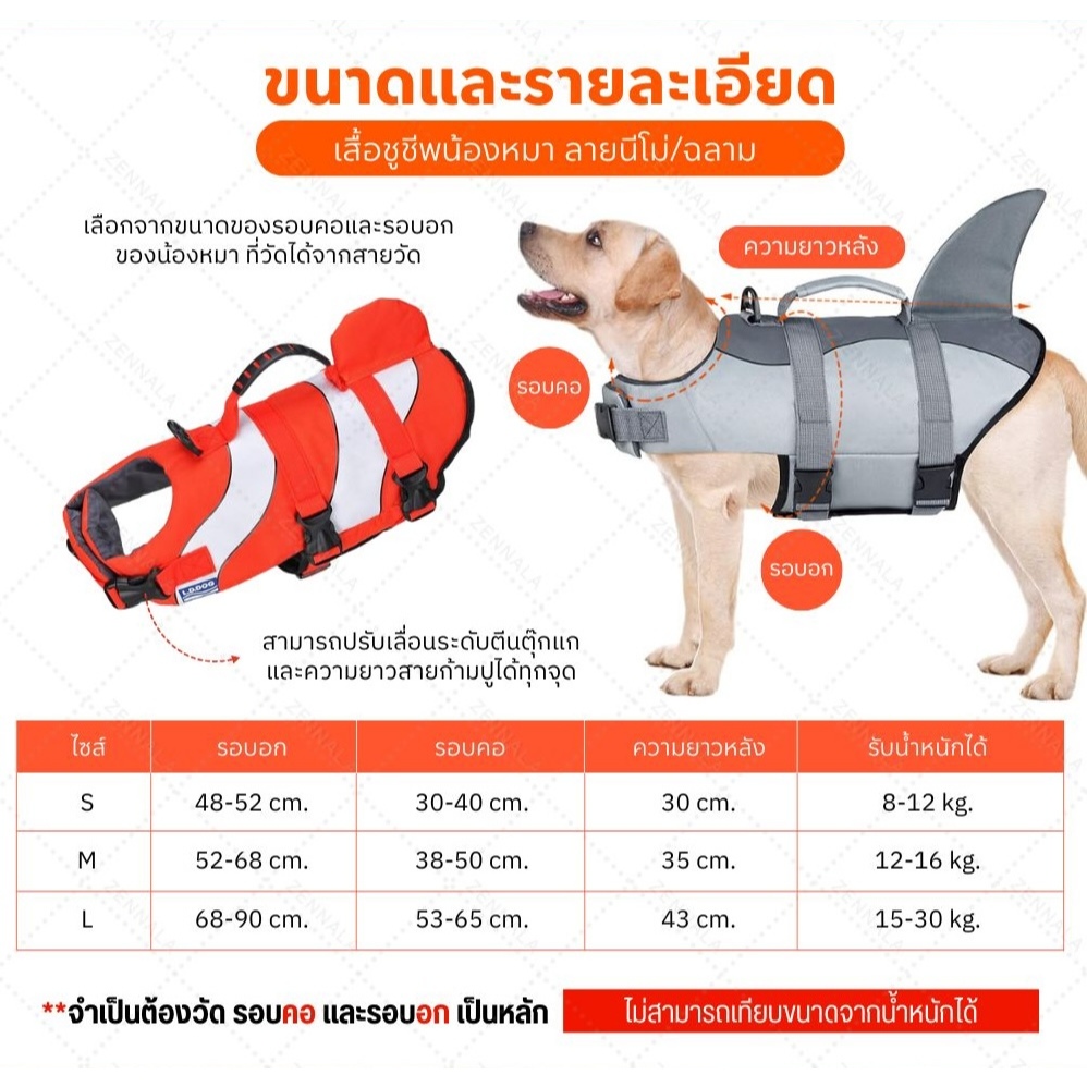 เสื้อชูชีพสุนัขหนาพิเศษ นีโม่ปลาฉลาม ไซส์ SML ชูชีพหมา 🐶 Pet Life Jacket ฟรีถุงเก็บอึ จนกว่าของจะหมด