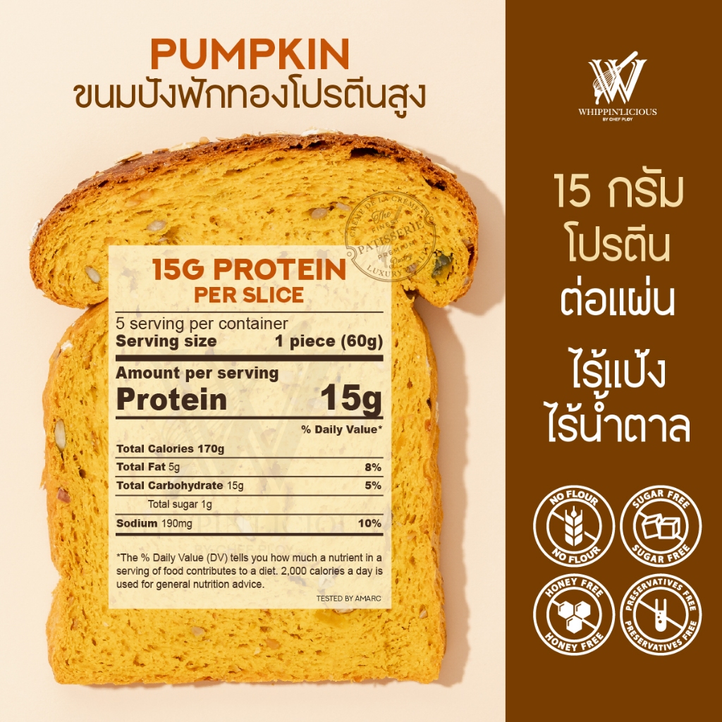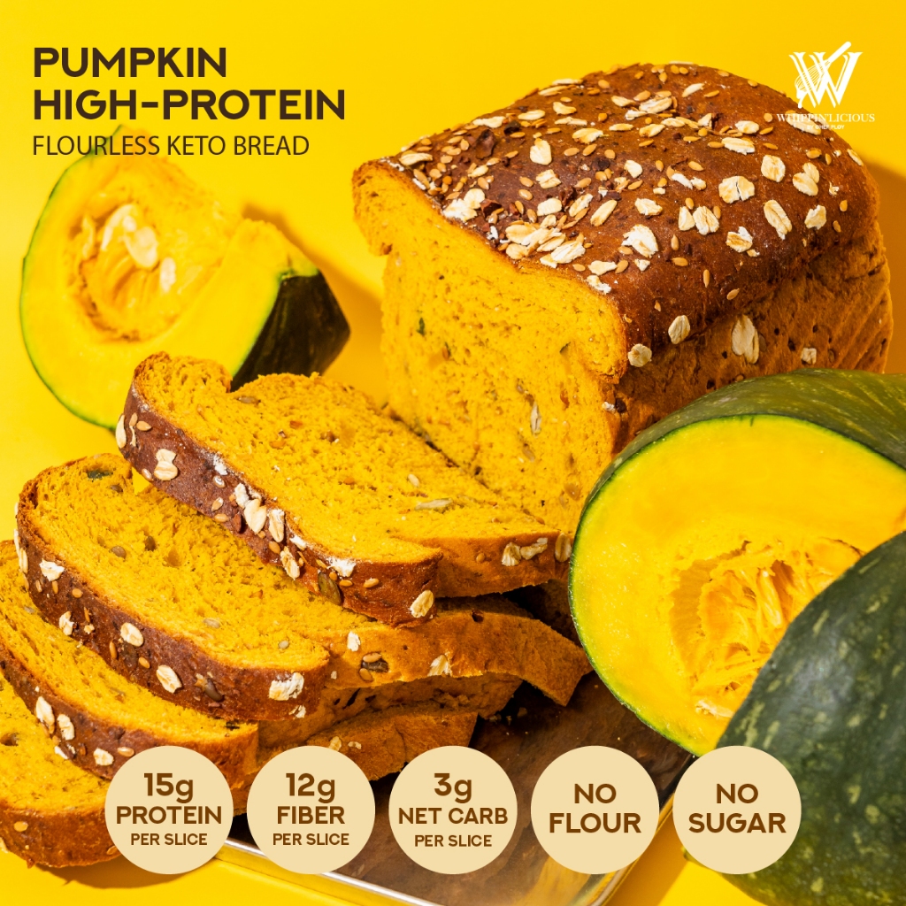ขนมปังคีโต ไร้แป้ง ไร้น้ำตาล โปรตีนสูง 15 กรัมต่อแผ่น รสฟักทอง (HIGH-PROTEIN PUMPKIN Superfoods Flourless Bread)