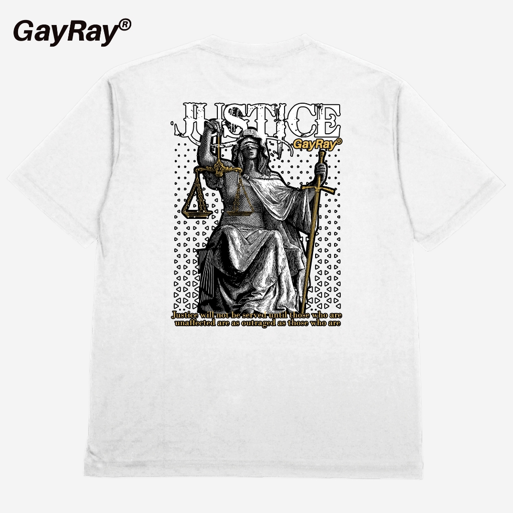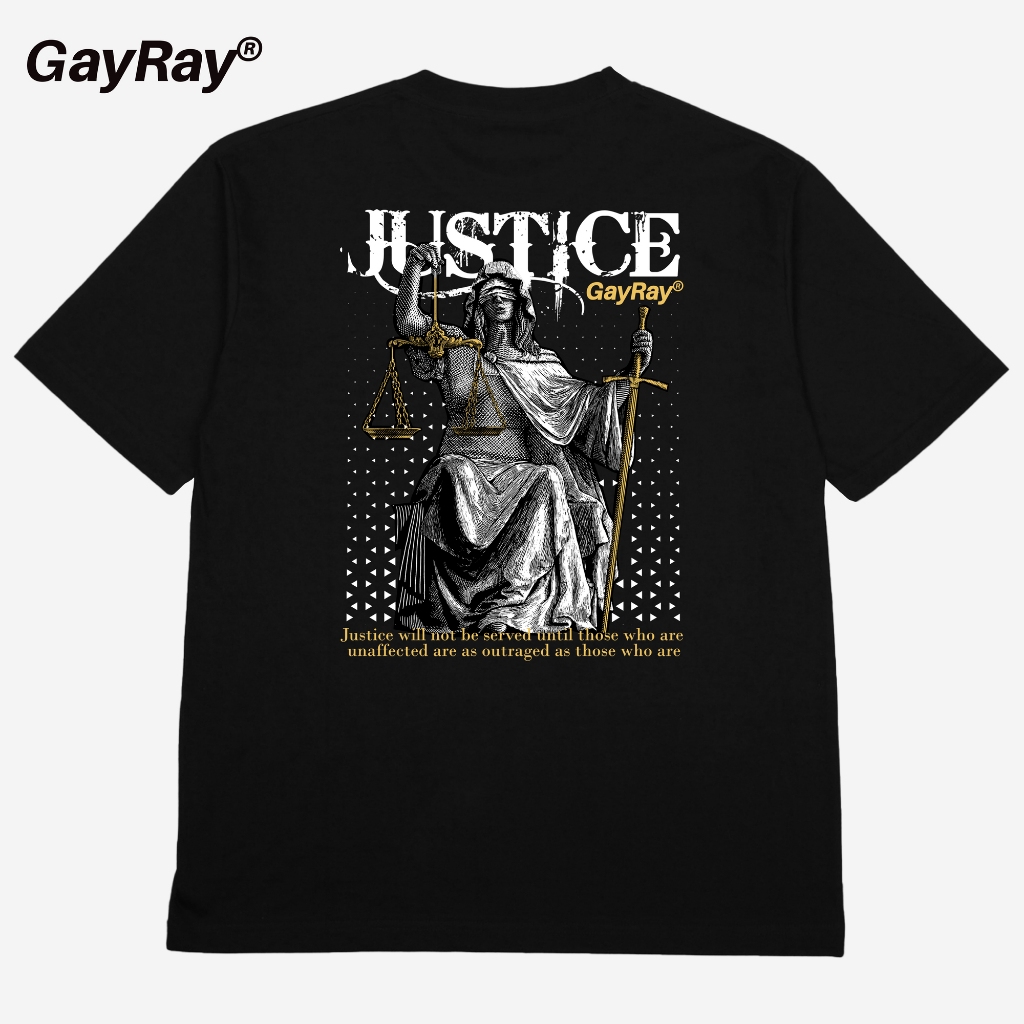 GayRay ⎰JUSTICE.⎱ เสื้อยืดโอเวอร์ไซส์ Cotton 100% นุ่่ม ใส่สบาย