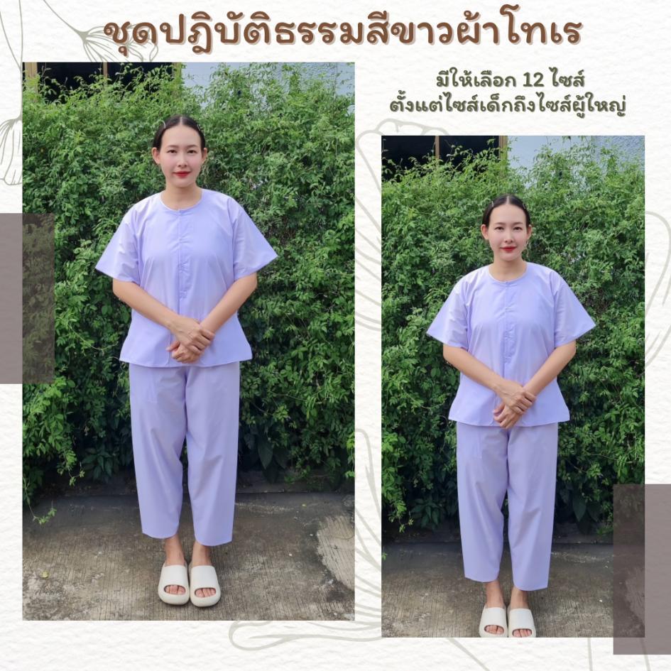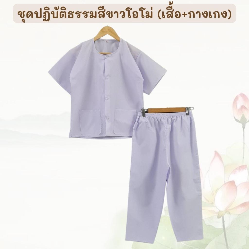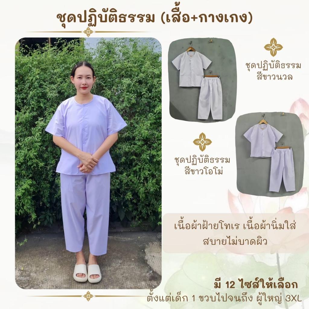 ชุดปฏิบัติธรรมสีขาวนวล (เสื้อ+กางเกง)ผ้าฝ้ายโทเร ยิ่งซักยิ่งนิ่ม ใส่ได้ทั้งชายและหญิง