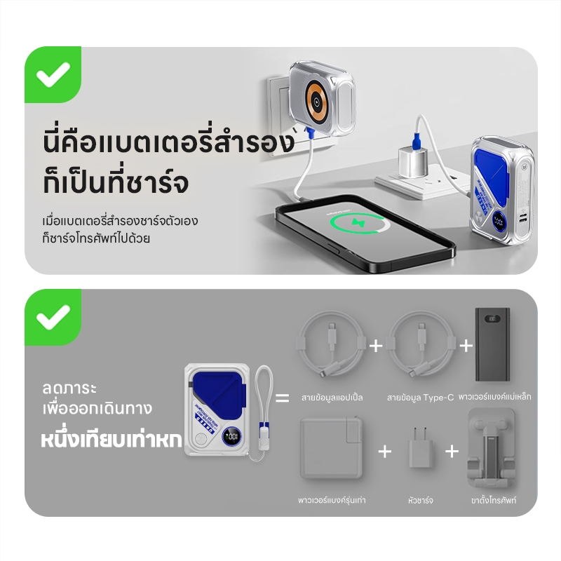 [CCC Mark] UNEED Powerbank Fast Charge พาวเวอร์แบงค์ 20000/30000mAh Magnetic พาวเวอร์แบงค์ชาร์จเร็ว PD35W ถอดสายชาร์จไฟ LED Display รับประกัน 2 ปี รุ่นกล่องของขวัญ