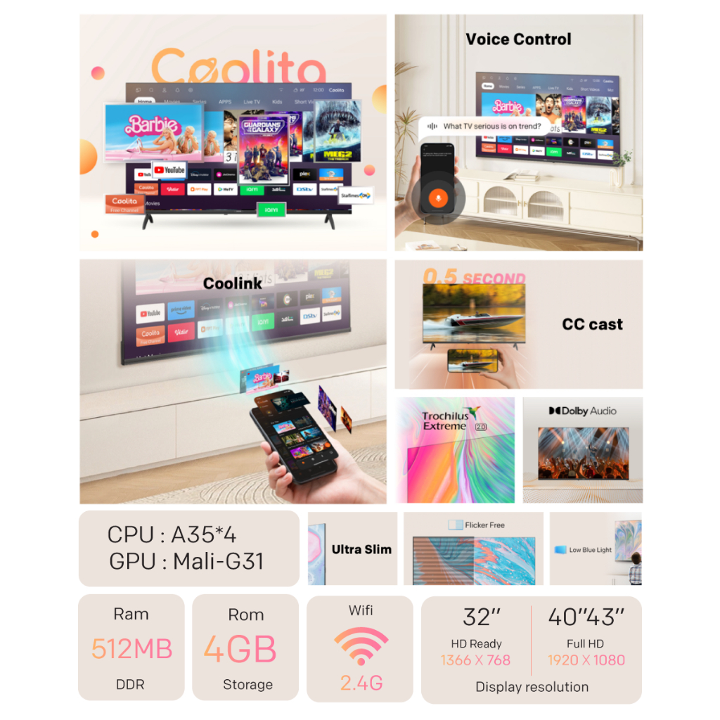 [ประกัน3ปี] SKYWORTH 32 นิ้ว Smart TV ทีวี HD Ready LED Dolby Audio Eye Care รุ่น 32S3U+ รองรับYouTube WeTV iQIYI Wi-Fi