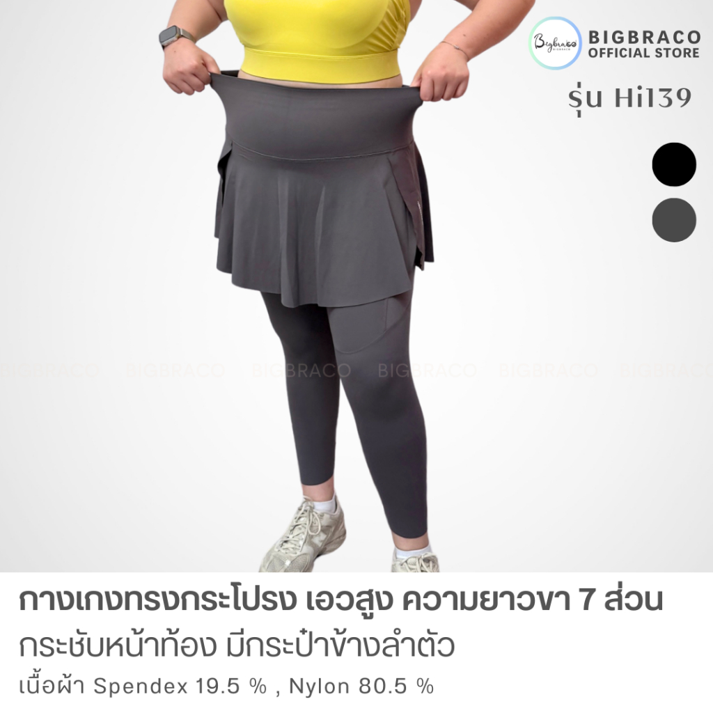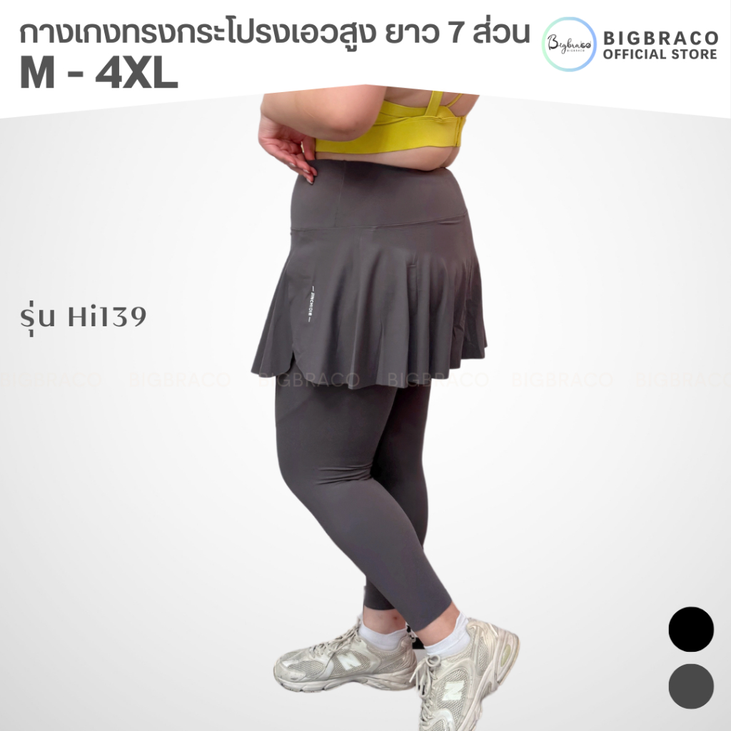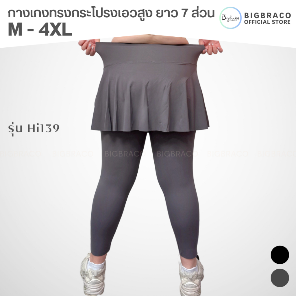 Bigbraco-HI139 (M-4XL) กางเกงทรงกระโปรง เอวสูงกระชับหน้าท้อง ความยาว 7 ส่วนมีกระป๋าข้างลำตัว