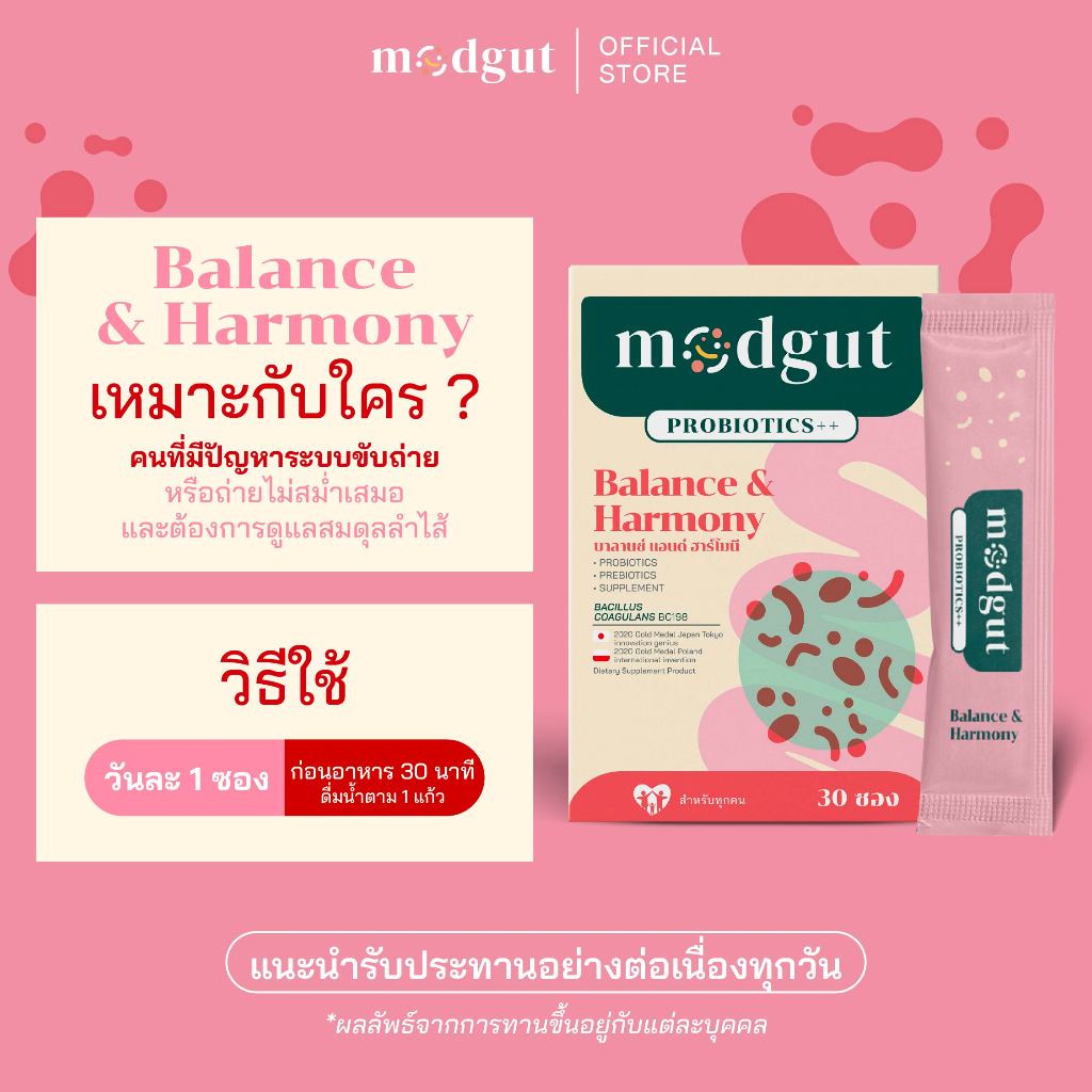 Modgut โพรไบโอติกส์ Probiotics++ สูตร Balance & Harmony สำหรับท้องผูก ช่วยสมดุลลำไส้ เซตทดลอง 7 ซอง