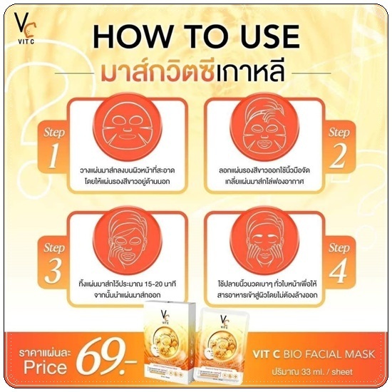 [ LIVE ][1กล่อง] Vit C Bio Facial Mask(สีส้ม) รัชชา วิตซี ไบโอเฟเซียลมาร์ก เหมาะกับผิวเป็นสิว รอยสิว รูขุมขนกว้าง