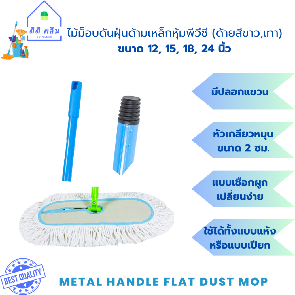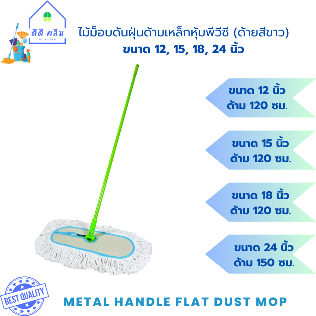 ไม้ม็อบดันฝุ่นด้ามเหล็กหุ้มพีวีซี ผ้าม็อบขนาด12, 15, 18, 24นิ้ว (ด้ายสีขาวและสีเทา)