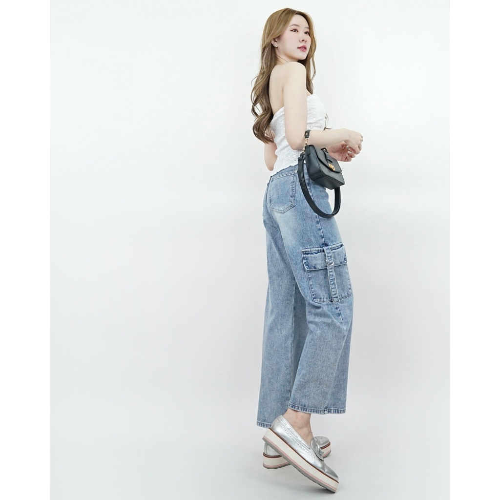 SLYQ FIESTA BELTED CARGO DENIM PANTS กางเกงยีนส์คาร์โก้ขายาวแต่งสายที่กระเป๋า