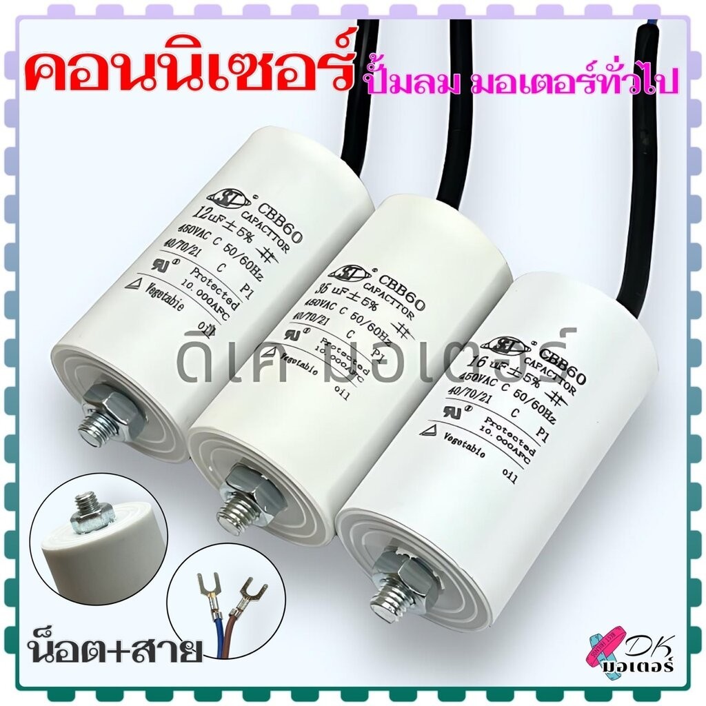 (Mit)รวม คอนนิเซอร์ คาปาซิเตอร์ ค่า 8-100uF 450v แบบน็อต+สาย สำหรับใส่ปั้ม พูม่า ทั่วไป ปั้มลมโรตารี่ ปั้มลมออยฟรี ปั...