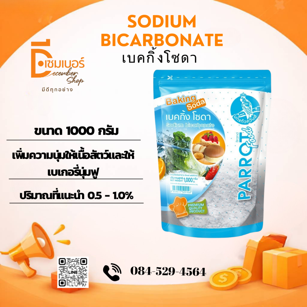 1 Kg. เบคกิ้งโซดา(โซเดียม ไบคาร์บอเนต) / Sodium Bicarbonate (เบลเยี่ยม) ตรา นกแก้ว