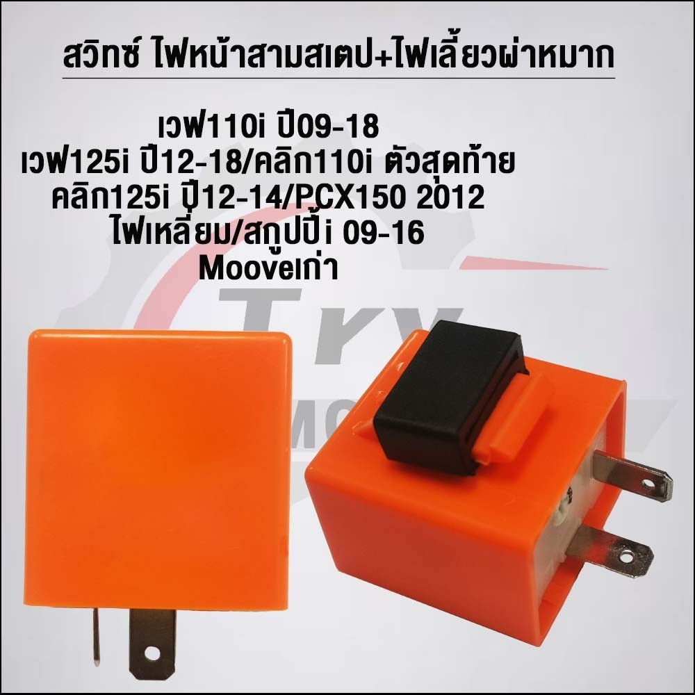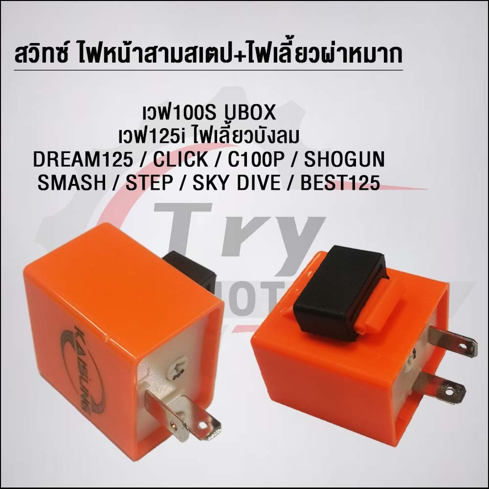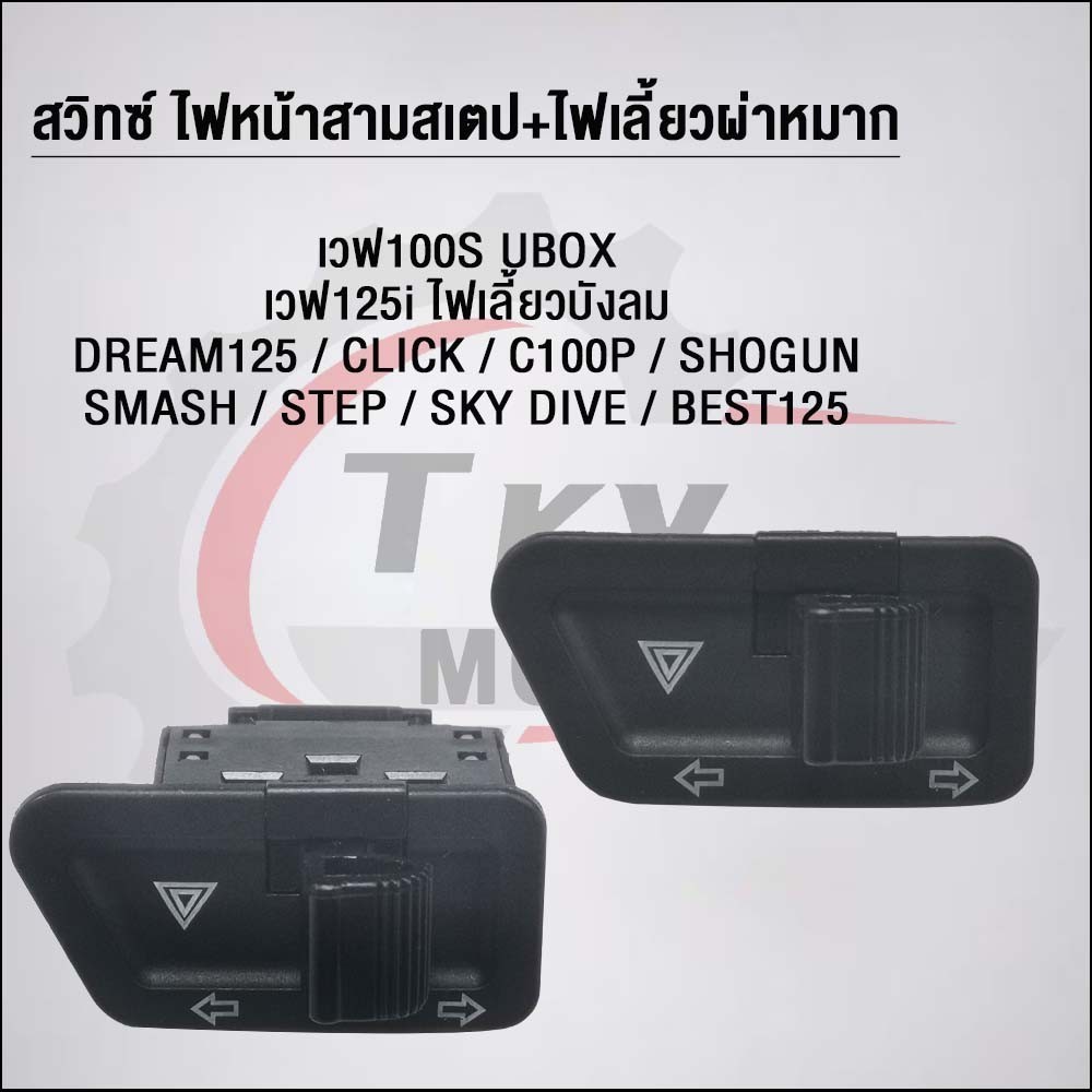 สวิทซ์ 3 สเตป+ไฟเลี้ยว พร้อมรีเลย์แต่ง เวฟ100/125 ไฟเลี้ยวบังลม/ CLICK/C100p/SHOGUN/SMASH/STEP/SK