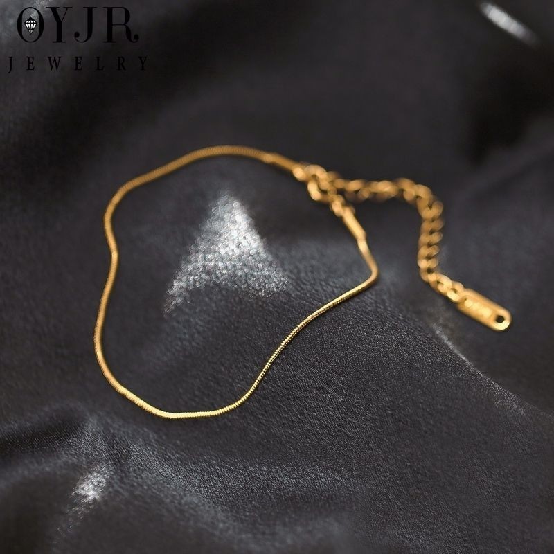 OYJR สร้อยข้อเท้าสแตนเลส สร้อยข้อเท้ากระดูกงูเรียบๆสำหรับผู้หญิง
