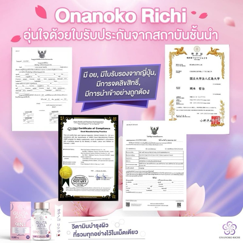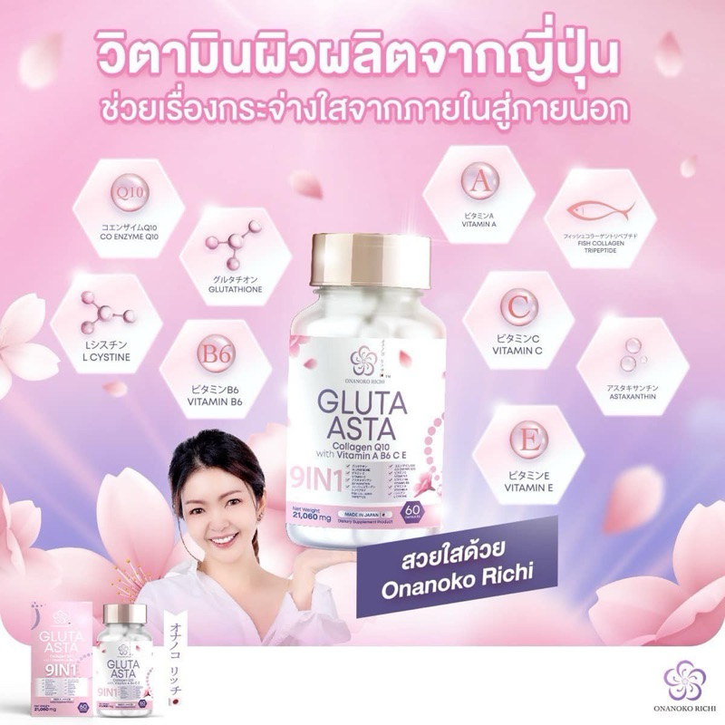โอนาโนโกะริจิ onanokorichi วิตามินผิวกลูต้าผลิตจากประเทศญี่ปุ่น สารสกัด 9in1