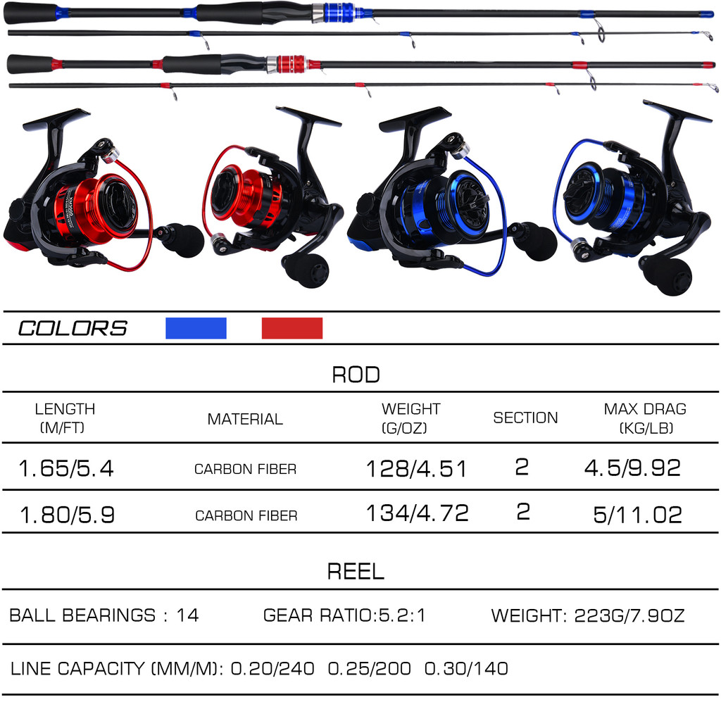 ตกปลาคอมโบตกปลาชุดเต็ม1.65/1.80เมตรสีแดง/สีฟ้า2ส่วนคาร์บอนปั่นก้านปั่นรีลกับสายการประมงล่อชุด โจรัน ตกปลา ตกปลา