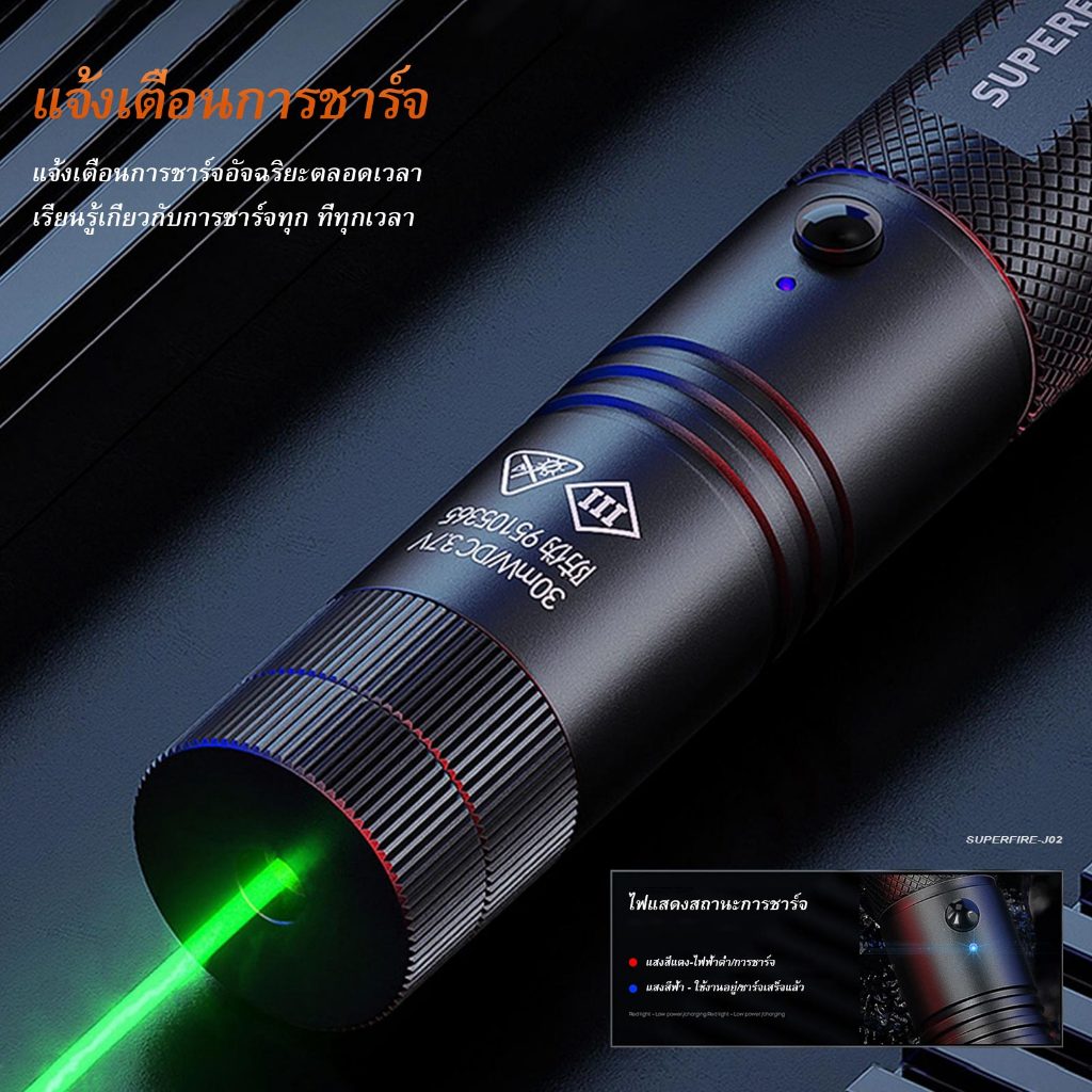 SUPERFIRE J02 ไฟฉายเลเซอร์เขียว 532nm USB ชาร์จ พร้อมปอยเตอร์โลหะอลูมิเนียม น้ำหนักเบา 77 กรัม สำหรับสอนและสำรวจป่า