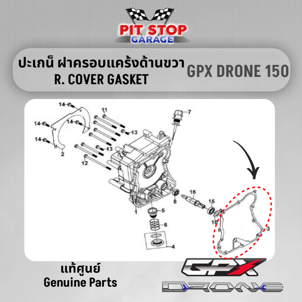 ปะเกน็ ฝาครอบแคร้งด้านขวา GPX Drone 150 R. COVER GASKET (ปี 2021-2025) 2V และ 4V GPX อะไหล่แท้ศุนย์