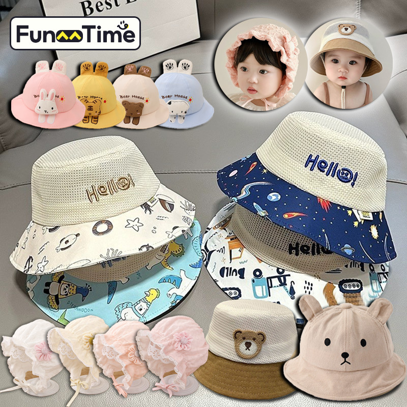 สําหรับเด็กผู้ชาย และเด็กผู้หญิง หมวกกันแดดเด็ก สไตล์ชาวประมง กันลม กันแดด 1-10อายุ