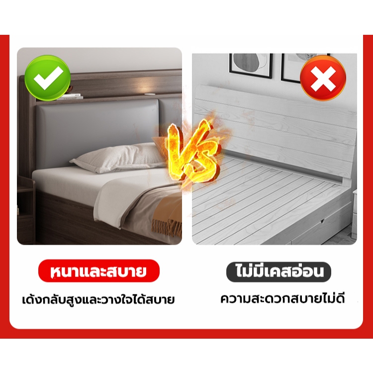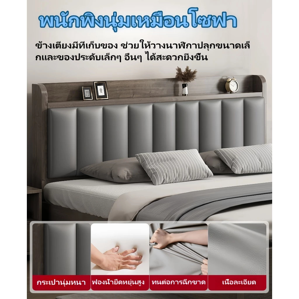 【ฟรีไฟ LED】🛌เตียงไม้ 5/6 ฟุต หัวเตียงนุ่ม ทันสมัยเรียบง่าย เตียงไม้ เนื้อไม้คุณภาพดี เบาะพิงนุ่มสบาย