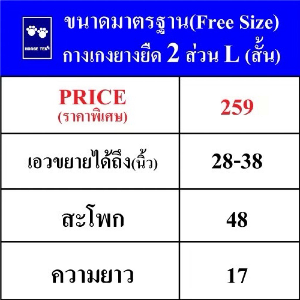 Horse ten กางเกงยางยืดขาสั้น 2 ส่วน M, L (สั้น) Freesize เอวยืดได้ตั้งแต่ (24-34’), (30-36’)