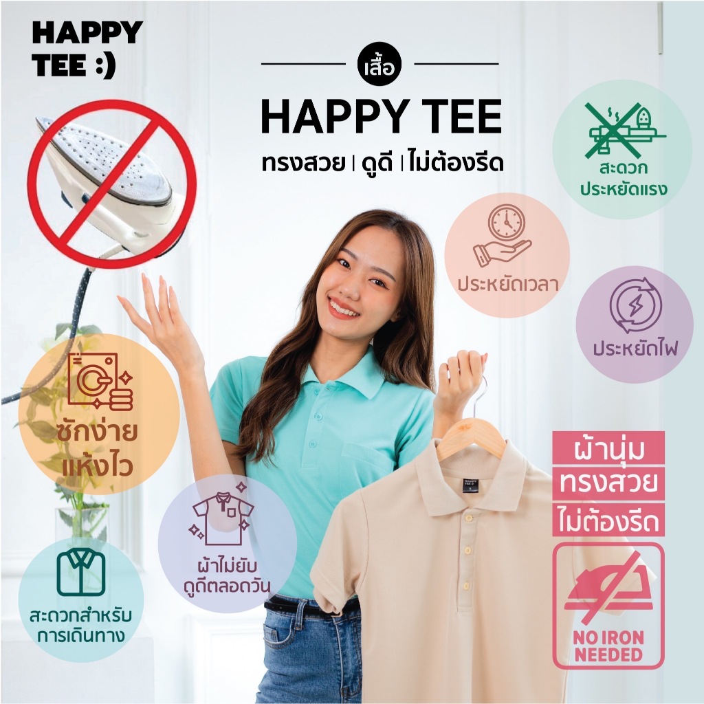 HAPPY TEE ท้าให้ลอง 2 สีใหม่!! เสื้อโปโล ทรงสวย ผ้านุ่มไม่ต้องรีด ใส่ได้ทั้งชายหญิง มีถึงรอบอก 61"