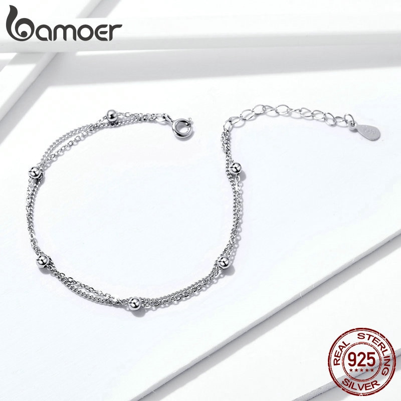 BAMOER 925 เงินสเตอร์ลิงสองชั้นสร้อยข้อมือผู้หญิงรอบลูกปัดโซ่ SCB131