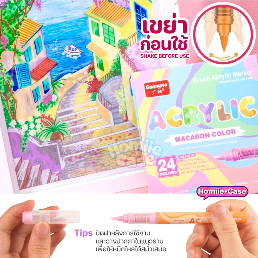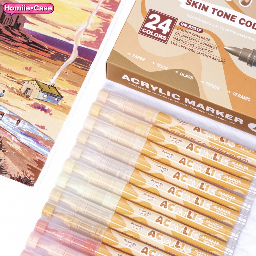 พร้อมส่ง🇹🇭 24 สี ( SKIN / MACARON ) ปากกาอะคริลิค หัวแปรง BRUSH ACRYLIC MARKER GuangNa GN.8201 สีเนื้อ ผิว พาสเทล