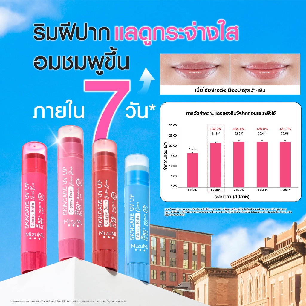 MizuMi Skincare UV Lip Glassy Balm 3.5g ลิปบาล์มกันแดด SPF50+ PA++++ ลดปากคล้ำ ปากดูอมชมพู ชุ่มชื้นยาวนาน