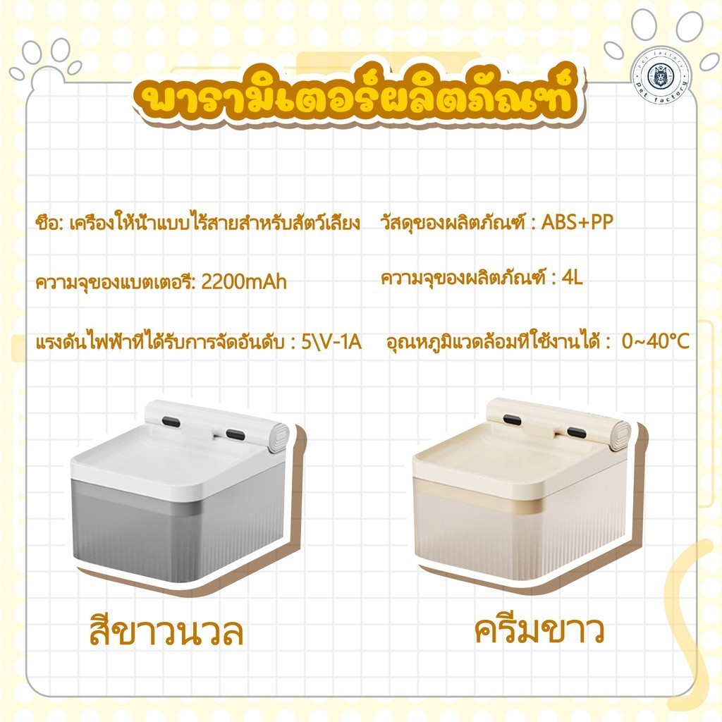 💎น้ำแมว น้ำพุ น้ำพุแมว รุ่นเหนี่ยวนำไร้สาย 4 ลิตร ทำความสะอาดง่าย ขนาดใหญ่ แบตเตอรี่ใช้งานได้ยาวนาน💎