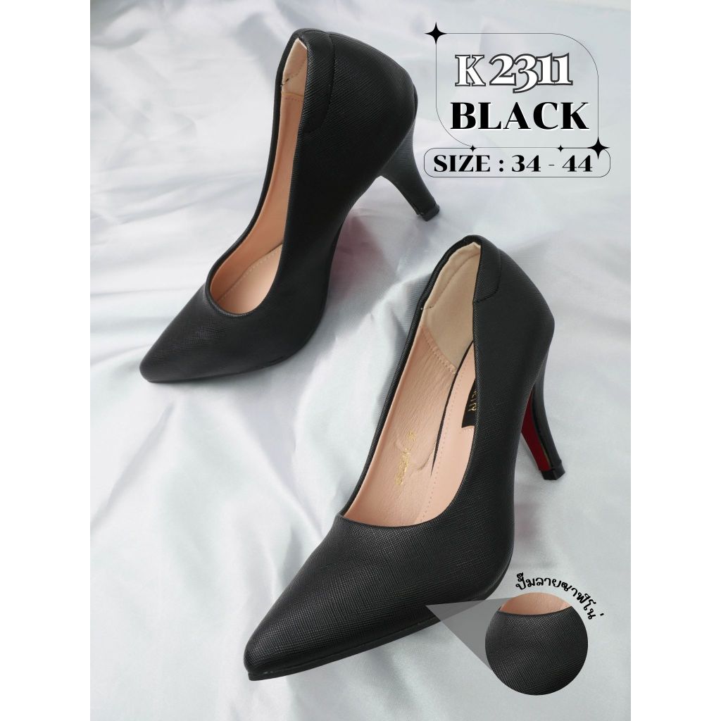 K2311 รองเท้าคัทชู ส้นสูง 3 นิ้ว หนัง PU ปั๊มลายซาฟิโน่