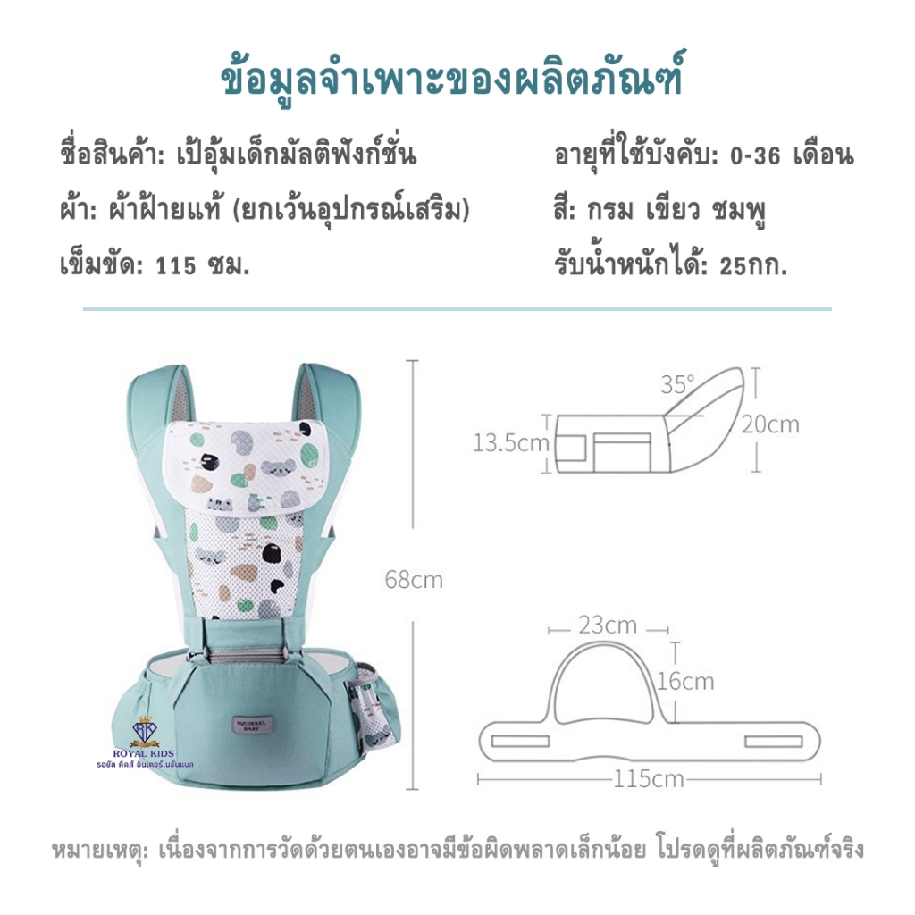 Fairy kids เป้อุ้มเด็กทารกแรกเกิด สลิง Ergobaby อุ้มเด็ก ตามหลักสรีรศาสตร์ Carrie 0-36 เดือน ที่นั่งสะโพก G0015