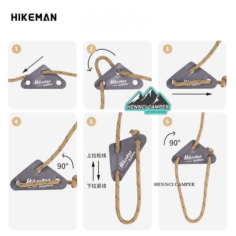 HIKEMAN ตัวปรับเชือกสามเหลี่ยม 3 รู ตัวล็อกเชือก ตัวเร่งเชือก รูขนาด6mm,8mm
