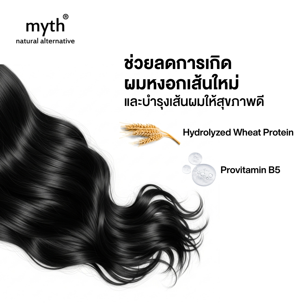 myth แชมพูสูตรช่วยลดผมหงอกจากสมุนไพร 15 ชนิด 15 Grey Hair Treatment Shampoo สูตรออร์แกนิก