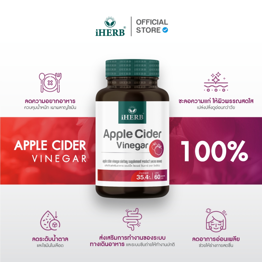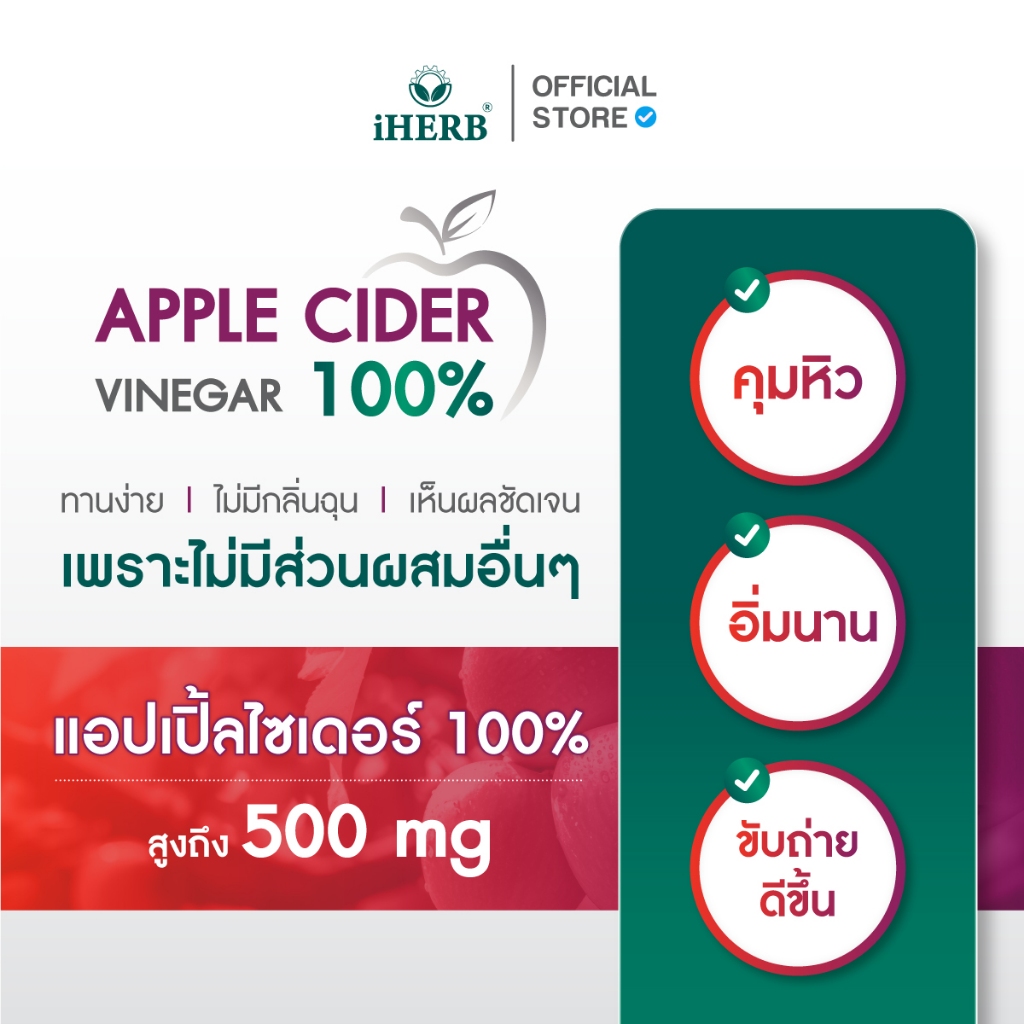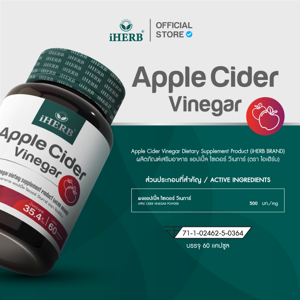 [1เเถม1] Apple Cider Vinegar [1กระปุก60แคปซูล] วิตามิน แอปเปิ้ลไซเดอร์ วีเนการ์ ตรา iHERB