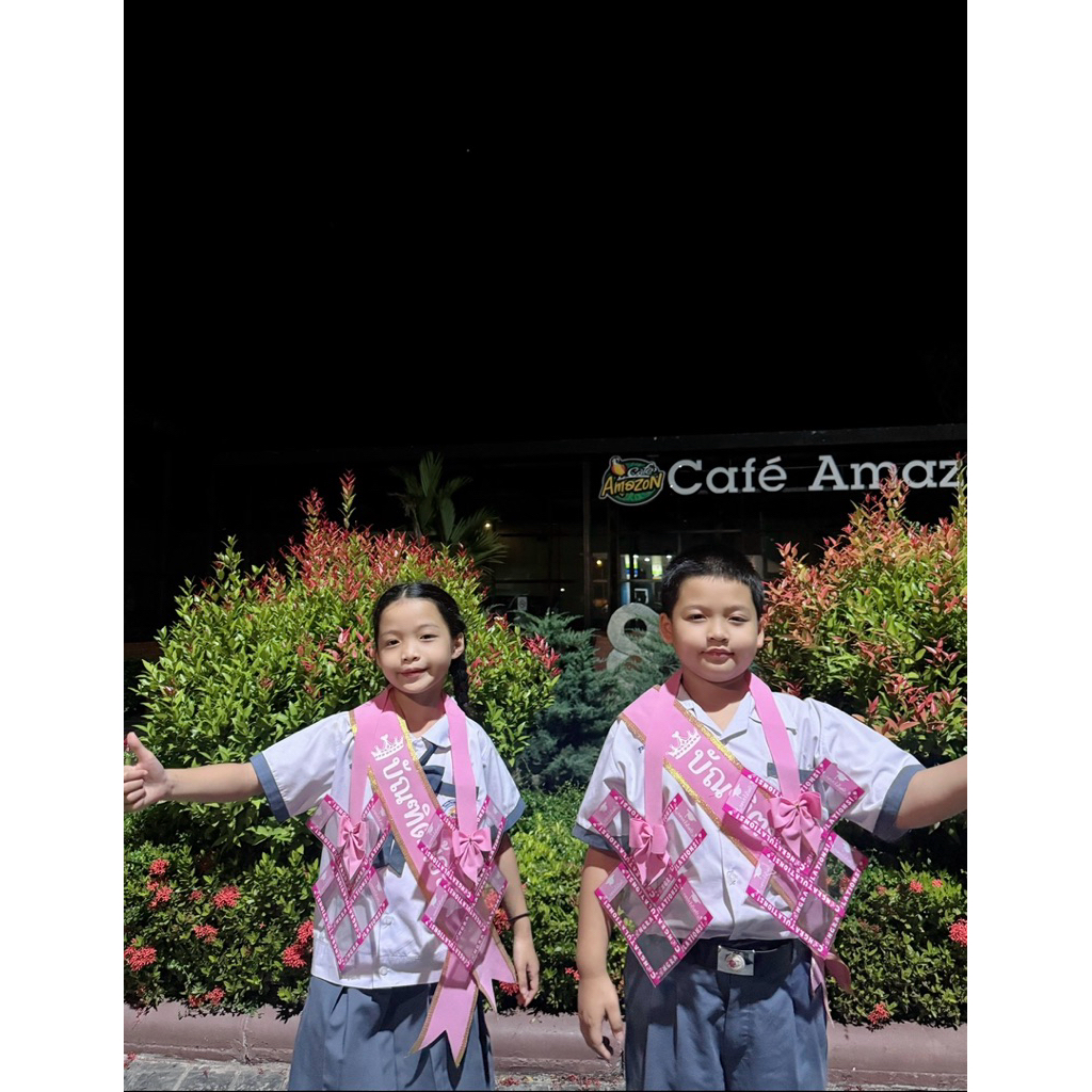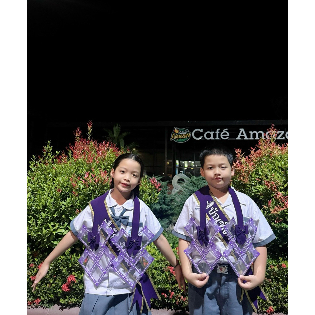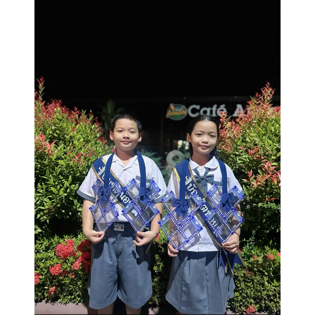 (46) >> เซตสายสะพายบัณฑิตน้อยขอบทองคู่มาลัยหัวใจจิ๋ว