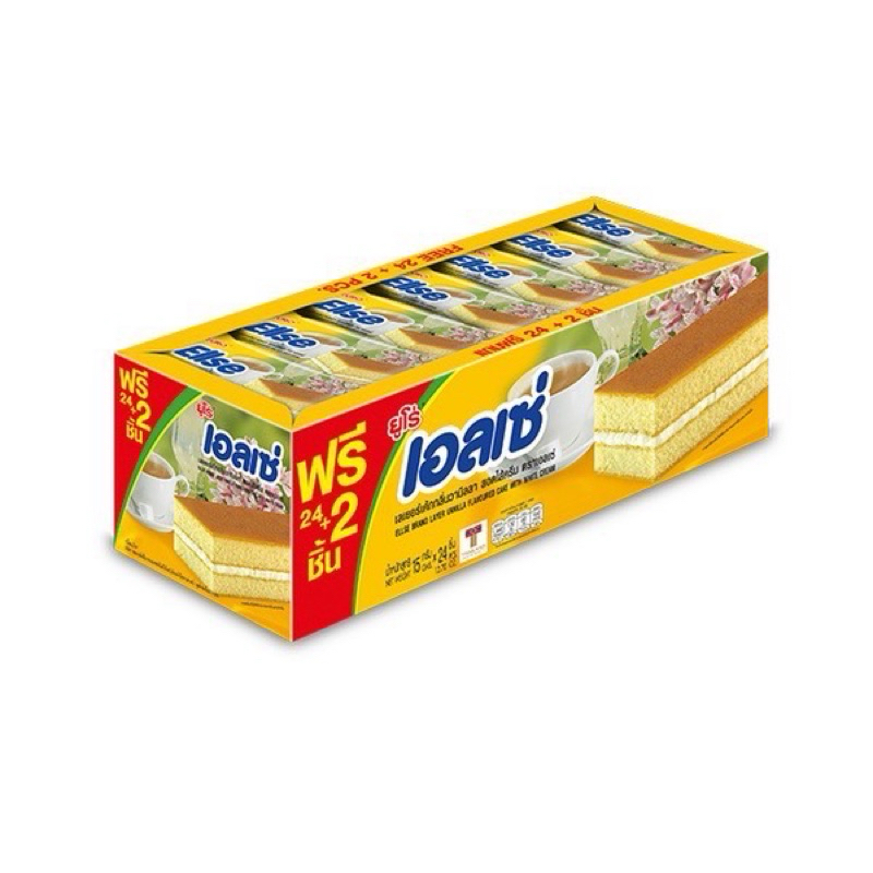 🍰Ellse 🍰เอลเซ่ เลเยอร์เค้ก 15 กรัม 24 ชิ้น ขนมเอลเซ่ เลเยอร์เค้กสอดไส้ครีม ตราเอลเซ่ 15 กรัม x 24 ชิ้น