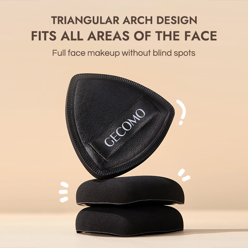 GECOMO Leather Makeup Puff Pu, Triangle Arc Design, Saves Liquid Foundation
