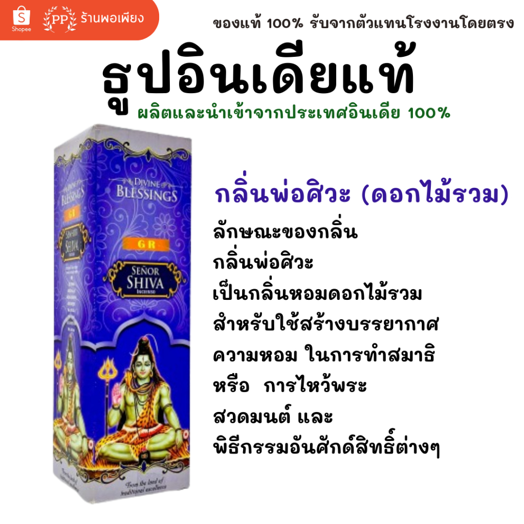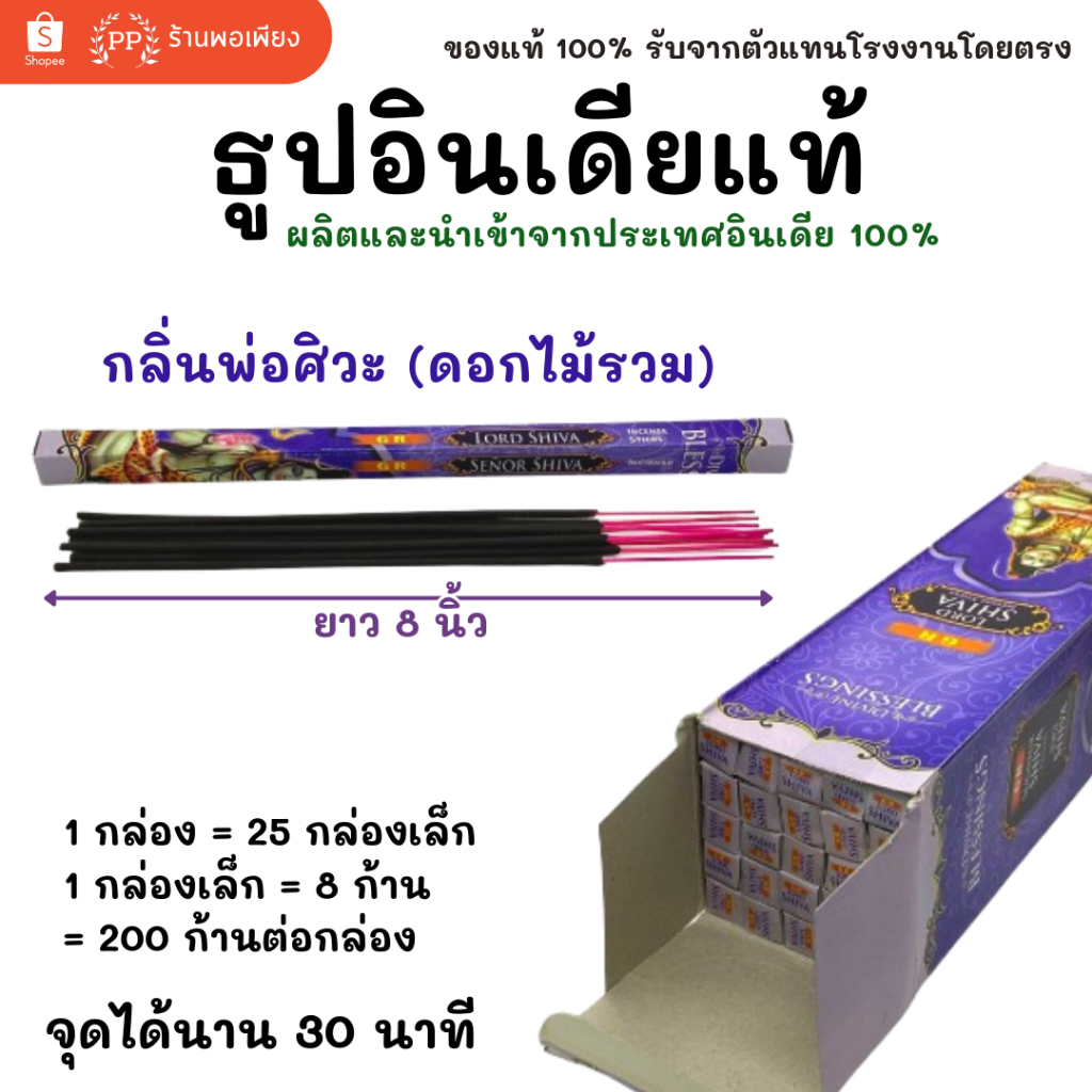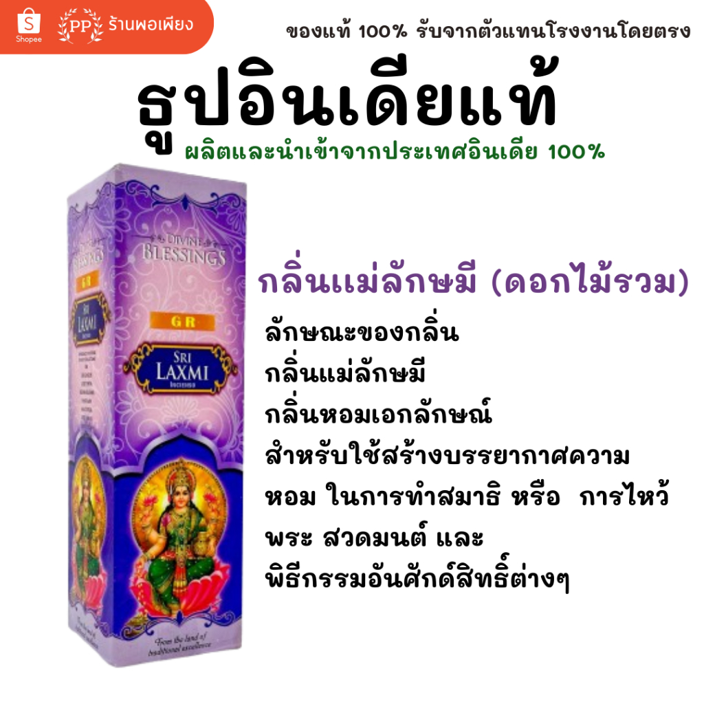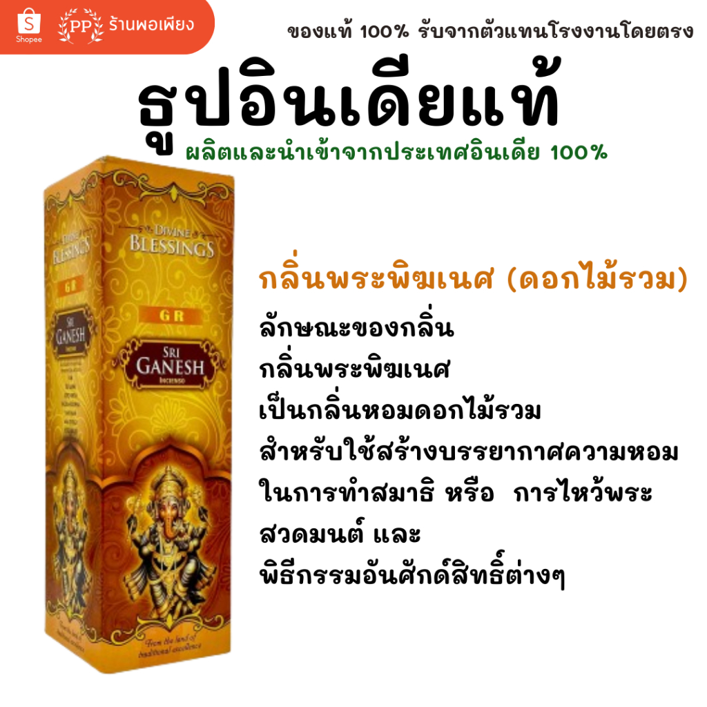 กล่องใหญ่ ธูป อินเดีย หอมมาก ของแท้ 100% GR - กลิ่นดอกไม้รวม พระพิฆเนศ / แม่ลักษมี / พ่อศิวะ นำเข้าถูกต้องจาก India